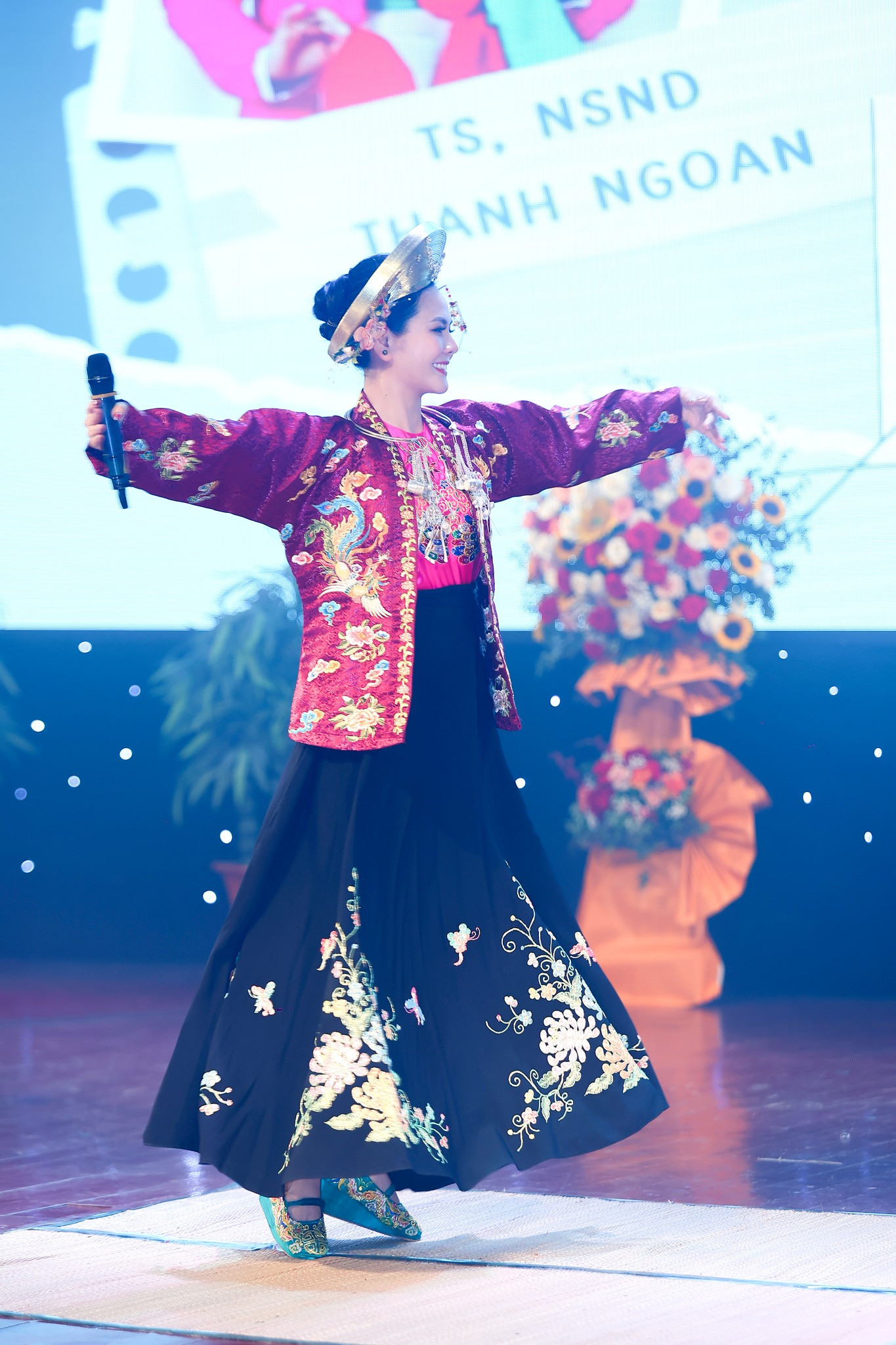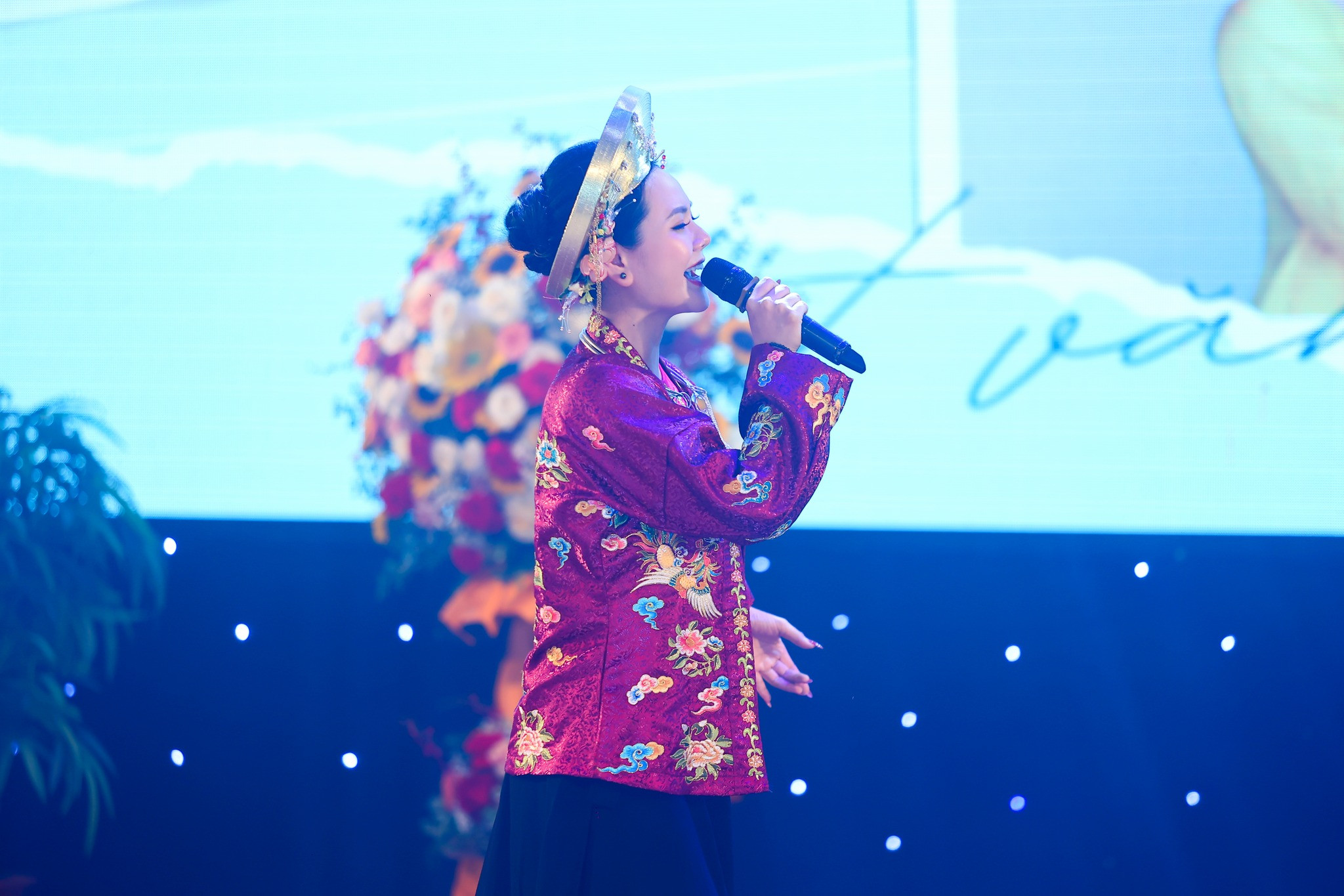 Ở phần biểu diễn bài hát văn 'Cô sáu Sơn Trang', Lương Nguyệt Anh tiếp tục gây ấn tượng khi hoá thân 'Cô Sáu Sơn Trang' với khăn áo rực rỡ.