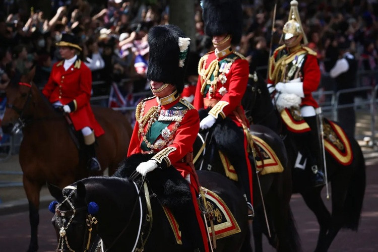 Lễ diễu hành mừng Đại lễ Bạch Kim mang tên Lễ rước Quân kỳ đã bắt đầu vào 10h sáng nay theo giờ Anh (tức 16h giờ Hà Nội), khi đội cận vệ cùng các kỵ binh và đoàn quân nhạc 400 người di chuyển theo đội hình trước Điện Buckingham.