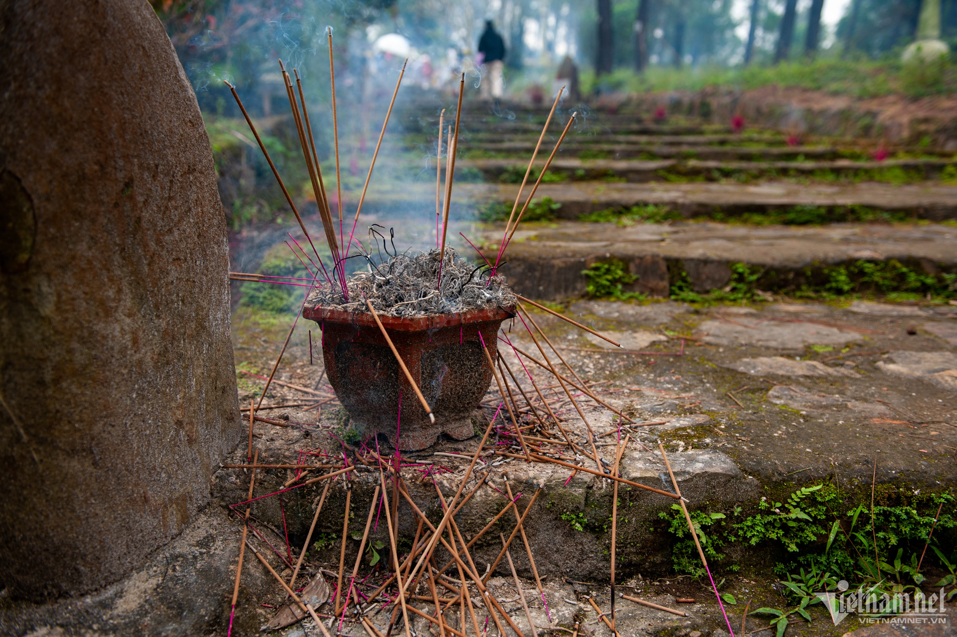 Du khách khi vừa bước chân tới đường đi bộ dẫn lên đỉnh sẽ thấy một khung cảnh lộn xộn. Nhiều người vừa đi vừa vái, cắm nhang khắp dọc lối đi.