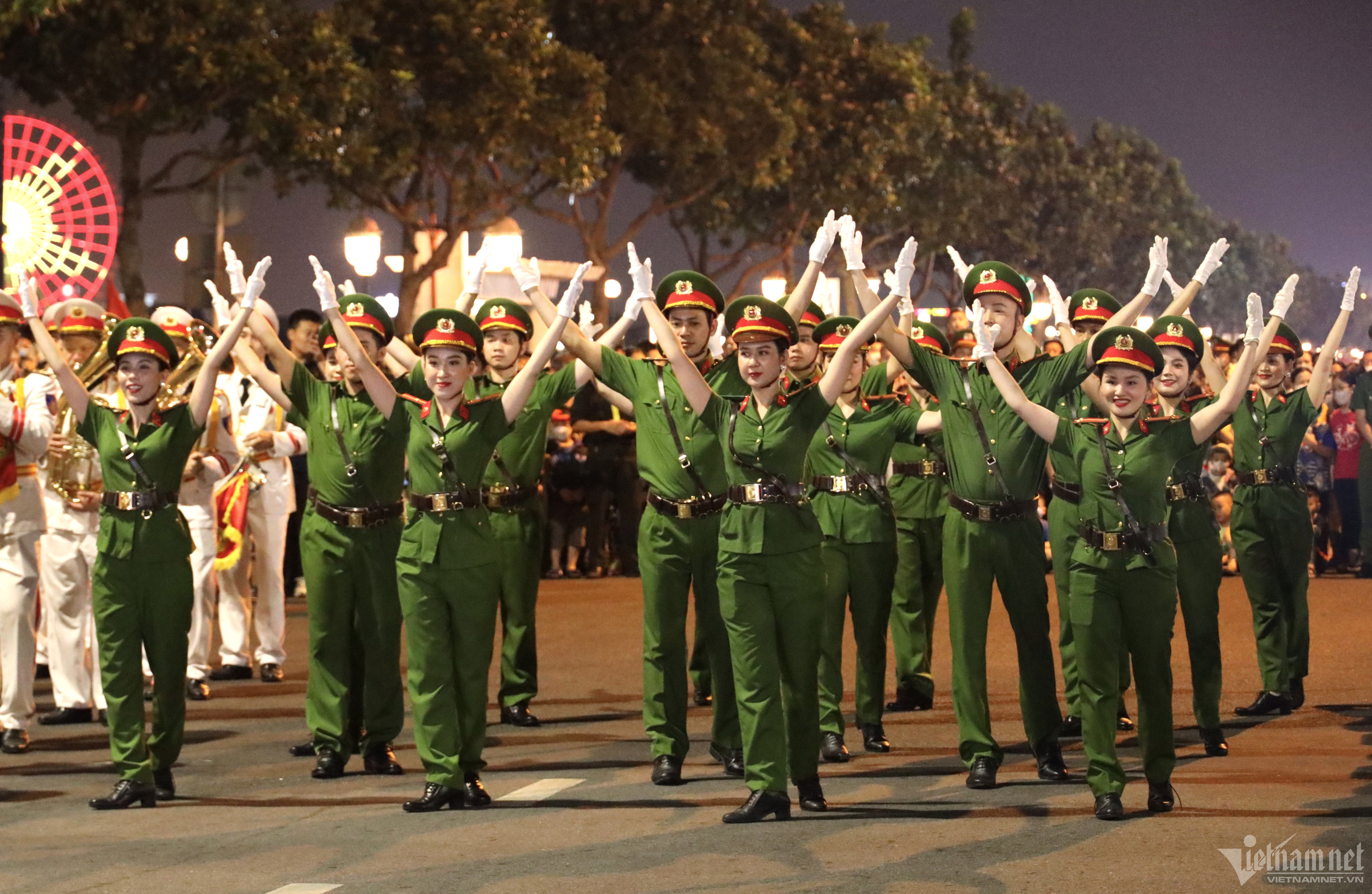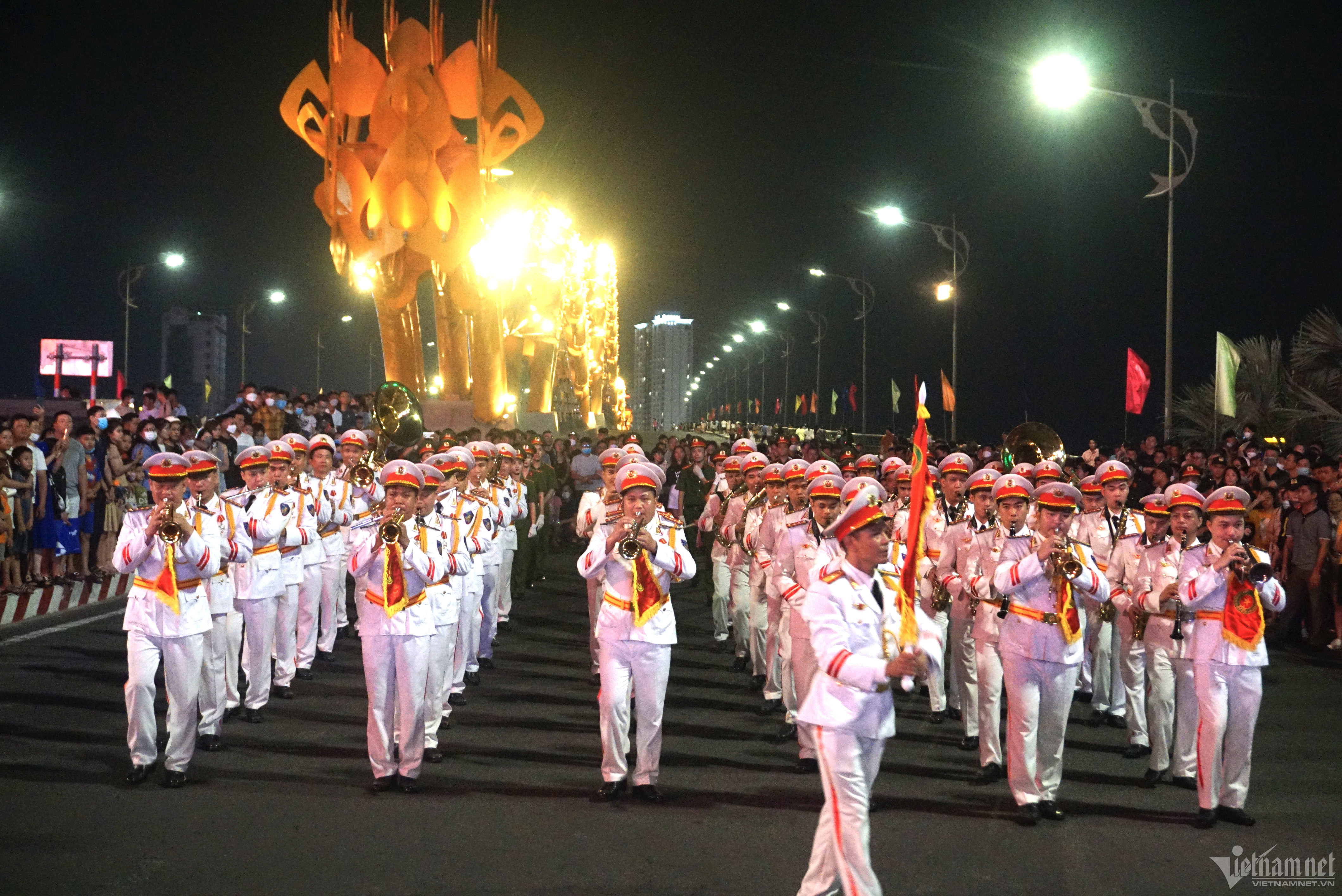 Tối 29/4, tại TP Đà Nẵng, Đoàn Nghi lễ Công an Nhân dân, Bộ Tư lệnh Cảnh sát cơ động tổ chức trình diễn các tác phẩm nghệ thuật phục vụ người dân và du khách trên tuyến đường Bạch Đằng (từ cầu Trần Thị Lý đến Cầu Rồng).