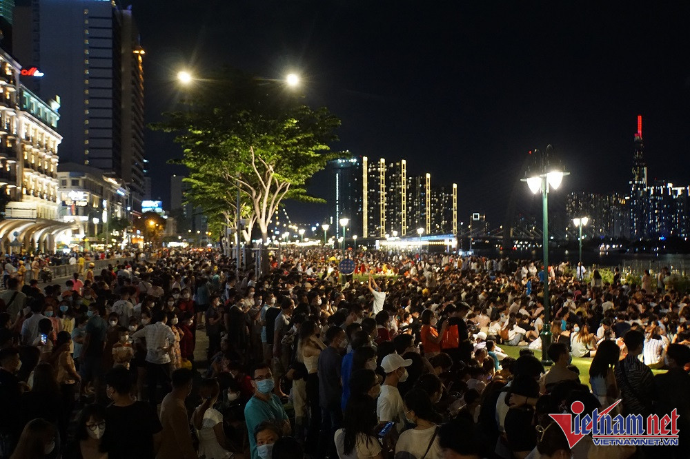 Trước đó, rất đông người dân và du khách đã đổ dồn về khu vực trung tâm TP.HCM chờ xem bắn pháo hoa.