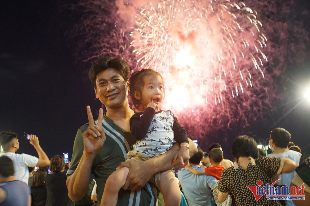 Những loạt pháo tầm cao được bắn lên rực sáng cả bầu trời trong sự thích thú, trầm trồ của người dân, du khách tối 30/4.