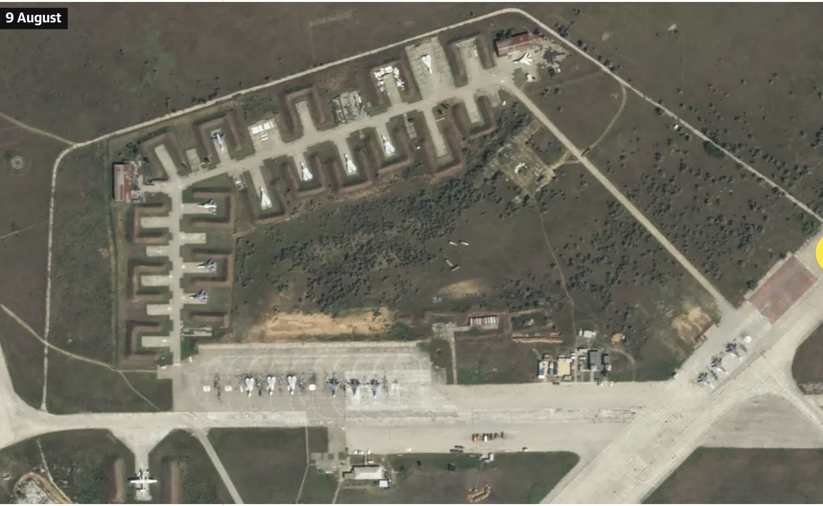 Ảnh do Planet Labs chụp lần lượt vào khoảng 8h sáng ngày 9/8, xấp xỉ 4h trước khi các vụ nổ xảy ra và lúc 4h40 chiều ngày 10/8, cho thấy ít nhất 8 máy bay bị phá hủy.
