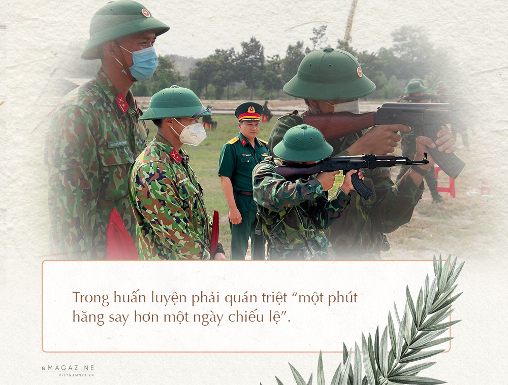 Tham gia kiểm tra và động viên chiến sĩ, Đại tá Phạm Anh Tuấn, Chính ủy Sư đoàn 5 cho biết, đơn vị đang tổ chức cho Tiểu đoàn 4, Trung đoàn 5 bắn phân đoạn bài bắn bia số 8, đứng bắn, một trong những chương trình huấn luyện của chiến sĩ mới.