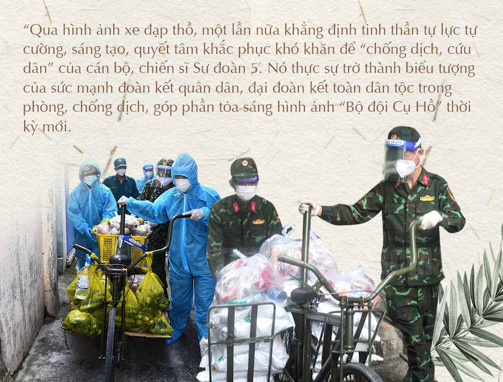 “Qua hình ảnh xe đạp thồ, một lần nữa khẳng định tinh thần tự lực tự cường, sáng tạo, quyết tâm khắc phục khó khăn để “chống dịch, cứu dân” của cán bộ, chiến sĩ Sư đoàn 5. Nó thực sự trở thành biểu tượng của sức mạnh đoàn kết quân dân, đại đoàn kết toàn dân tộc trong phòng, chống dịch, góp phần tỏa sáng hình ảnh “Bộ đội Cụ Hồ” thời kỳ mới. Cách sử dụng xe đạp thồ vận chuyển hàng hóa hỗ trợ nhân dân của Sư đoàn 5 được thủ trưởng các cấp đánh giá cao, chỉ đạo nhiều đơn vị, địa phương nhân rộng thực hiện”, theo Đại tá Tuấn.