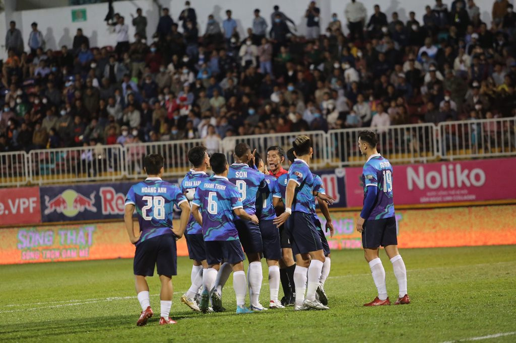 Chưa dừng ở đó, thuyền trưởng của Topenland Bình Định khẳng định: “Trận đấu hôm nay ở tình huống thổi phạt đền đầu tiên cũng không hoàn toàn chính xác 100%, còn ở quả thứ 2 , phải nói thật là trọng tài tặng cho HAGL 1 điểm.