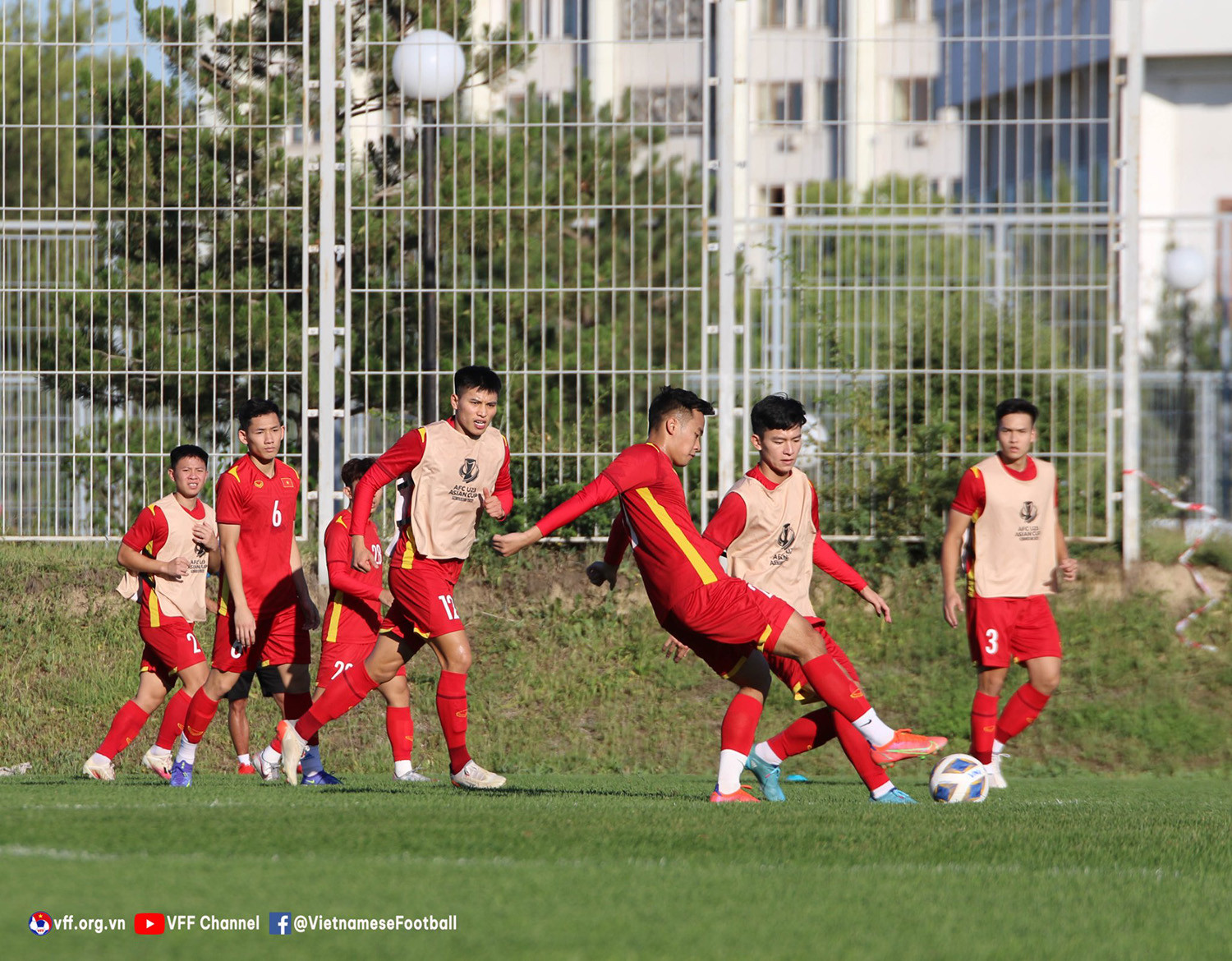 Chiều 4/6, U23 Việt Nam có buổi tập chuẩn bị cho trận gặp U23 Hàn Quốc, lượt trận thứ 2 bảng C, VCK U23 châu Á 2022Ở buổi tập này có sự xuất hiện của thủ môn Văn Toản. Tuy nhiên, người gác đền CLB Hải Phòng bị chấn thương trật ngón tay nên chắc chắn không thể thi đấu trong trận gặp U23 Hàn Quốc. Quan Văn Chuẩn khả năng tiếp tục được HLV Gong tin dùngThanh Bình bị sốt nên không thể ra sân ở trận gặp Thái Lan. Cầu thủ CLB Viettel trở lại trong cuộc đối đầu với U23 Hàn QuốcỞ buổi tập duy nhất chuẩn bị cho trận gặp U23 Hàn Quốc, HLV Gong Oh Kyun đổi số áo các cầu thủ cho nhau nhằm tung hỏa mù đối thủU23 Việt Nam có sự chuẩn bị kỹ về tâm lý, thể lực và đấu pháp trước trận đấu rất quan trọng với U23 Hàn QuốcTinh thần của các cầu thủ rất thoải máiVấn đề khiến HLV Gong lo lắng nhất là thể lực. Dù vậy, nhiều khả năng U23 Việt Nam không chơi pressing tầm cao như trận gặp Thái LanThay vào đó, U23 Việt Nam đá với đội hình thấp, chơi phòng ngự phản công giống như thời HLV Park Hang Seo nhằm có 1 điểm trước đối thủ mạnh U23 Hàn Quốc.
