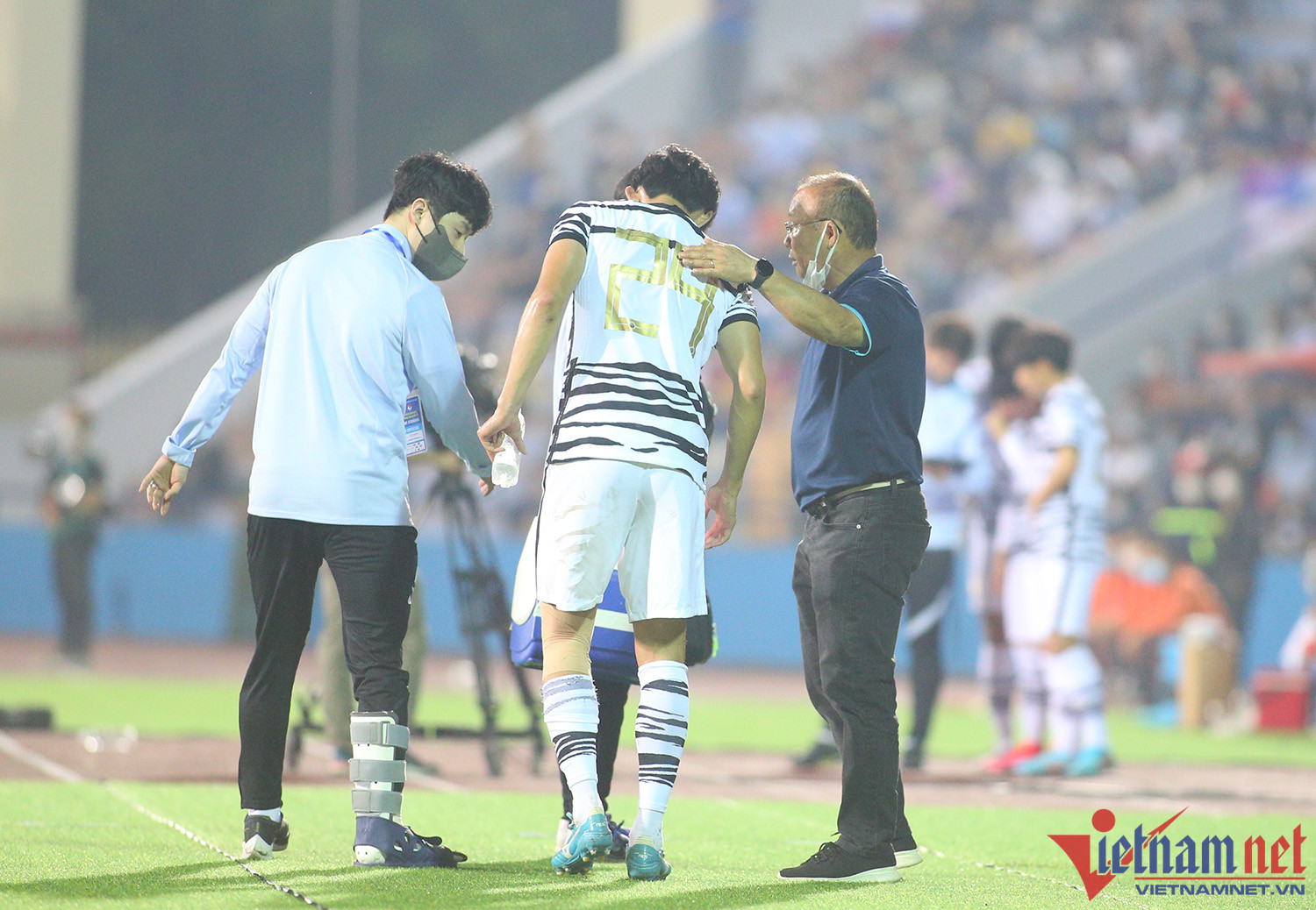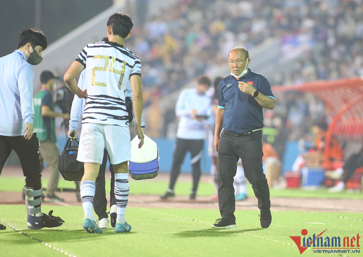 HLV Park Hang Seo tỏ ra rất lo lắng khi chứng kiến một cầu thủ U20 Hàn Quốc gặp chấn thương trong trận đấu với U23 Việt Nam.