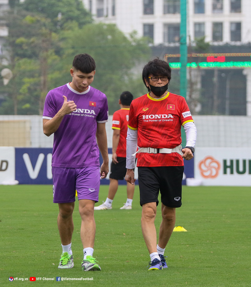 Sau hai trận giao hữu với U20 Hàn Quốc, U23 Việt Nam trở lại tập luyện vào chiều 24/4. Chỉ còn chưa đầy 2 tuần nữa U23 Việt Nam chính thức bước vào chiến dịch bảo vệ tấm HCV SEA Games, HLV Park Hang Seo buộc phải siết chặt kỷ luật, kỷ cương đối với các học trò trong sinh hoạt và tập luyệnÔng thầy người Hàn Quốc yêu cầu toàn đội phải dành sự tập trung cao độ cho mục tiêu phía trước, không được phép có bất cứ sự hời hợt hay sao nhãng nào trong tập luyệnĐặc biệt, 3 cầu thủ trên 23 tuổi gồm đội trưởng Hùng Dũng, tiền vệ Hoàng Đức và tiền đạo Tiến Linh được ông Park giao nhiệm vụ đặc biệt. Ba trụ cột của U23 Việt Nam được chia vào 3 nhóm khác nhau trên sân tập nhằm đốc thúc các đàn em tập luyệnLiễu Quang Vinh vẫn đang tích cực tập hồi phục, chạy đua với thời gian trước SEA Games 31Trong khi thủ môn Văn Toản đã hoàn toàn bình phục chấn thương vaiU23 Việt Nam đón tin vui với sự trở lại của trung vệ Trần Quang Thịnh sau thời gian điều trị chấn thương cơ đùiU23 Việt Nam tích cực tập luyệnMục tiêu của U23 Việt Nam không gì khác là bảo vệ tấm HCV SEA Games trên sân nhàTheo kế hoạch, thầy trò HLV Park Hang Seo duy trì tập luyện hàng ngày tại sân Trung tâm đào tạo bóng đá trẻ Việt Nam cho đến ngày 30/4 sẽ di chuyển lên Phú Thọ, địa điểm tổ chức các trận đấu bảng A, môn bóng đá nam SEA Games 31Sau khi di chuyển tới Việt Trì, HLV Park Hang Seo có quỹ thời gian 5 ngày để hoàn thiện những mảnh ghép cuối cùng trước khi chốt lại danh sách chính thức gồm 20 cầu thủ trước trận gặp Indonesia, 6/5.