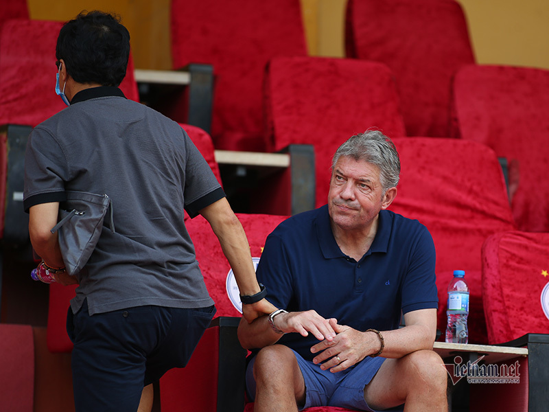 - GĐKT Juergen Gede và "cạ cứng" của thầy Park- trợ lý Lee Young Jin cùng xuất hiện xem trận Hà Nội- Viettel nhưng đôi bên khá lạnh nhạt khi đụng nhau trên khán đài.