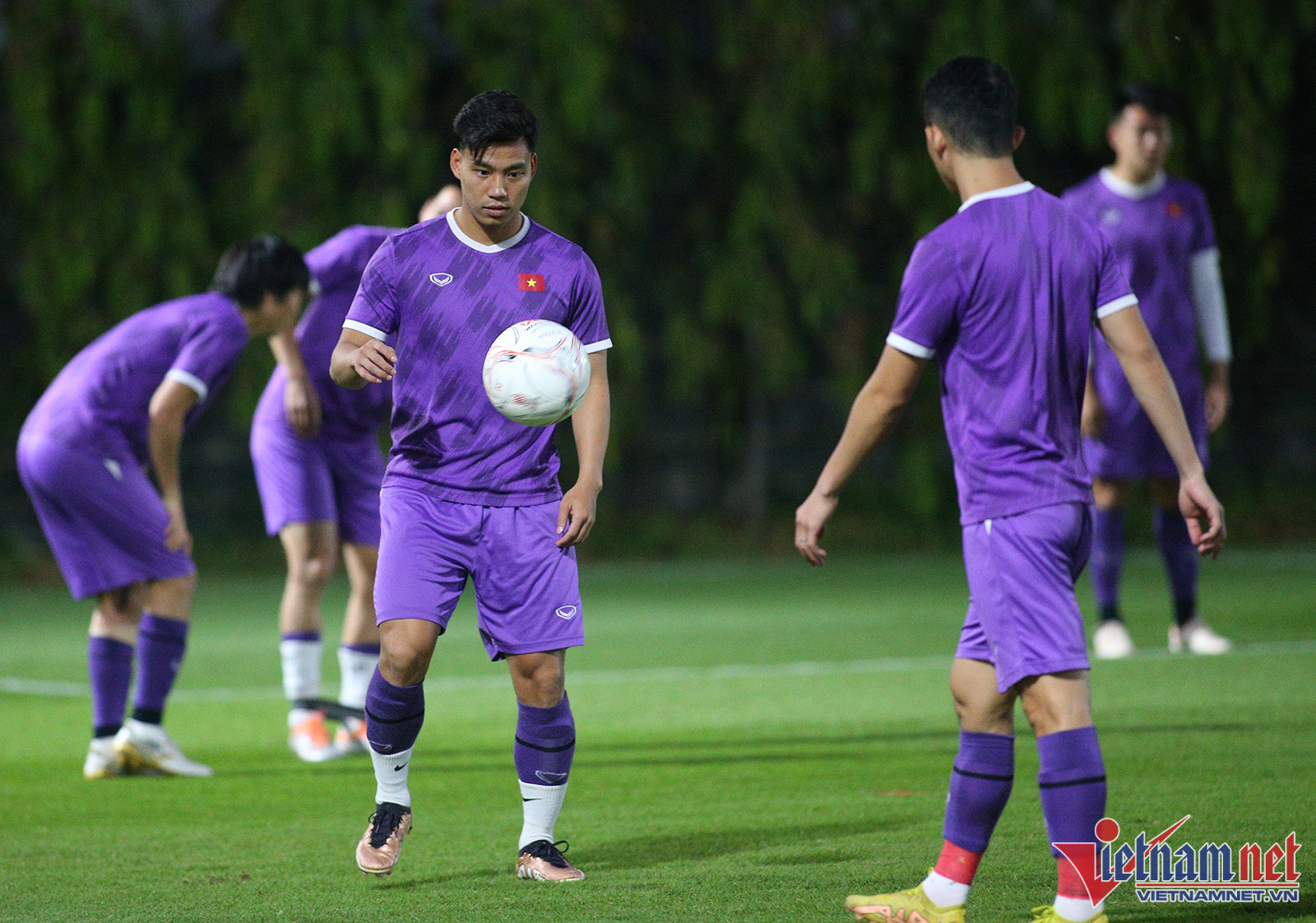 Sau khi từ sân bay về khách sạn, tuyển Việt Nam chỉ có khoảng 2 tiếng nghỉ ngơi trước khi bước ra sân tập. Ở buổi tập đầu tiên trên đất Thái Lan, chỉ có 12 cầu thủ ra sân. Đây đều là những người trong danh sách dự bị ở trận gặp Thái Lan tối 13/1.Trợ lý Lee thay HLV Park Hang Seo điều hành buổi tập. Trong khi đó, HLV Park Hang Seo cùng các cầu thủ đá chính tập hồi phục tại khách sạn.Thủ thành Văn Lâm vắng mặt trên sân tập của tuyển Việt Nam.Tuyển Việt Nam tích cực tập luyện để có sự chuẩn bị tốt nhất cho trận chung kết lượt về AFF Cup 2022.Dù là những cầu thủ dự bị nhưng Thành Chung, Việt Anh... thường xuyên được HLV Park Hang Seo sử dụng ở AFF Cup 2022. Hai cầu thủ này đều thi đấu trong trận gặp Thái Lan tại Mỹ Đình.Văn Thanh với bàn thắng để đời mang về trận hòa 2-2 cho tuyển Việt Nam đang rất tự tin tiếp tục chơi hết sức ở trận lượt về.Trong khi đó Văn Quyết chưa có bàn thắng nào.Cầu thủ xuất sắc nhất V-League còn cơ hội cuối để thể hiện ở AFF Cup 2022.Tuyển Việt Nam có 2 buổi tập tại Thái Lan.Chiều 15/1, tuyển Việt Nam tập làm quen sân Thammasat. HLV Park Hang Seo và một cầu thủ tham dự buổi họp báo trước trận đấu.