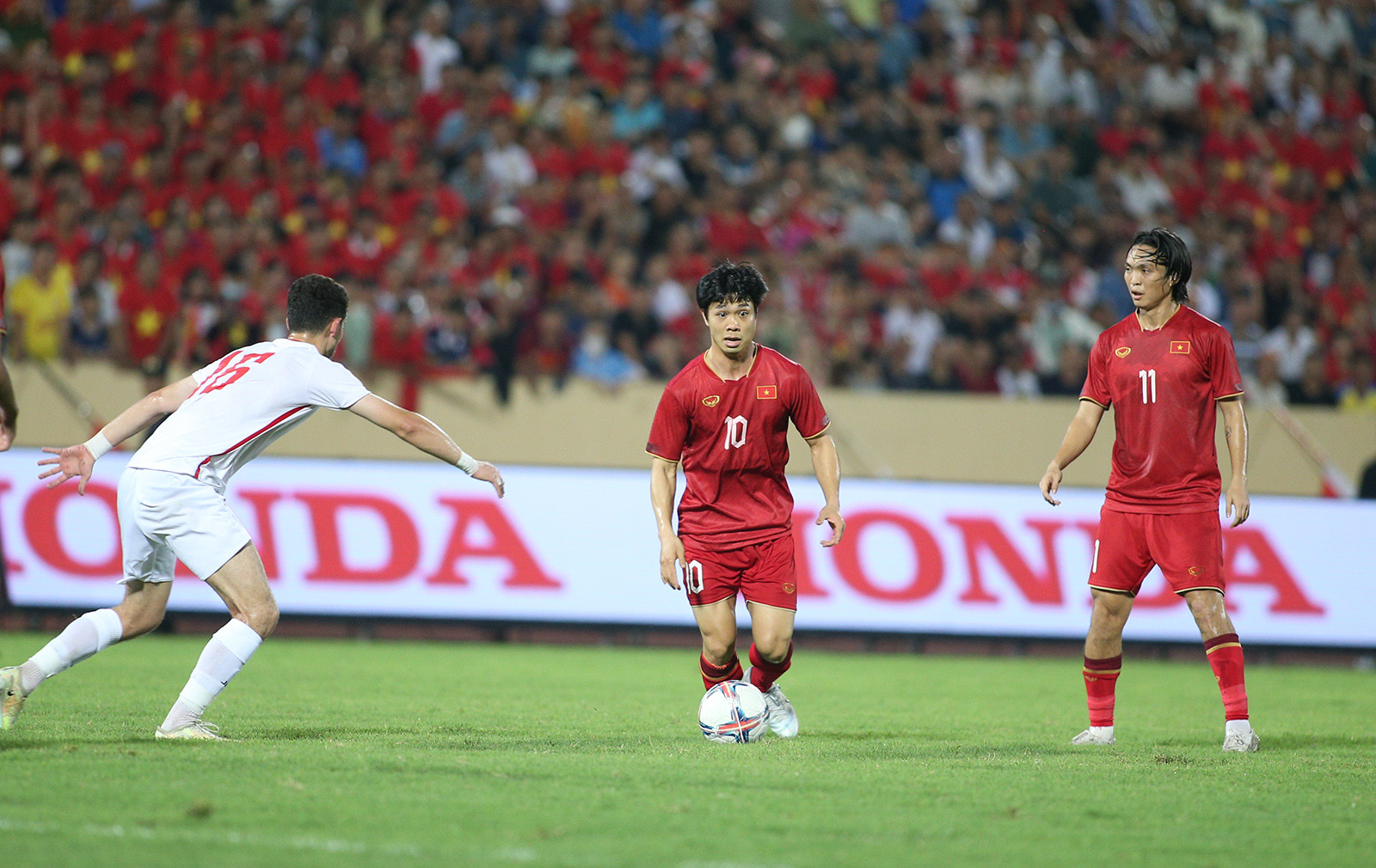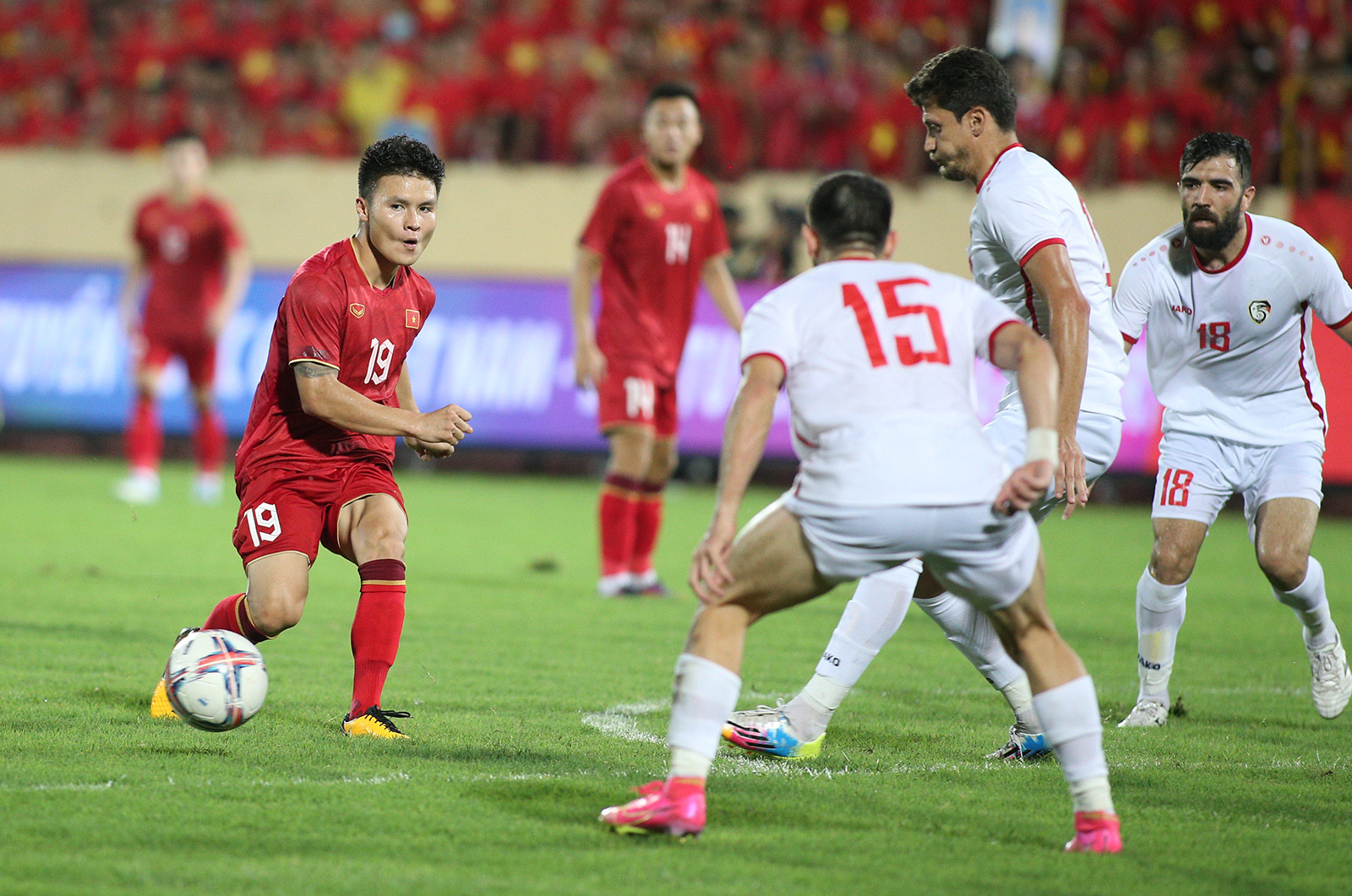 Sau trận thắng Hong Kong (Trung Quốc) 1-0, tuyển Việt Nam có trận giao hữu cuối cùng dịp FIFA Days tháng 6, gặp Syria trên sân Thiên Trường.Văn Lâm, Quang Hải và các đồng đội quyết tâm có màn trình diễn cống hiến người hâm mộ. Syria được đánh giá cao hơn Hong Kong nhưng đây là thử thách không quá lớn với đội bóng áo đỏ.Cũng như trận gặp Hong Kong, Quang Hải được HLV Philippe Troussier xếp đá chính. Được HLV trưởng tin tưởng và trao cơ hội thể hiện, Quang Hải có một trận đấu tốt.Anh di chuyển rộng lôi kéo các cầu thủ Syria tạo khoảng trống cho đồng đội. Những đường chuyền của số 19 cũng chính xác hơn."Thực sự đây là một trận đấu mà toàn đội thi đấu hết sức đem lại cảm xúc cho các CĐV. Chúng tôi luôn nói với nhau là toàn đội sẽ từng bước một làm việc chăm chỉ để hướng tới sự tiến bộ qua từng trận đấu", Quang Hải chia sẻ sau trận thắng Syria 1-0.Khi được hỏi về màn thể hiện của mình ở trận này, Quang Hải khiêm tốn nói: "Tôi nghĩ chắc mình chỉ đạt điểm 5. Bản thân tôi phải nỗ lực và cố gắng nhiều hơn nữa".