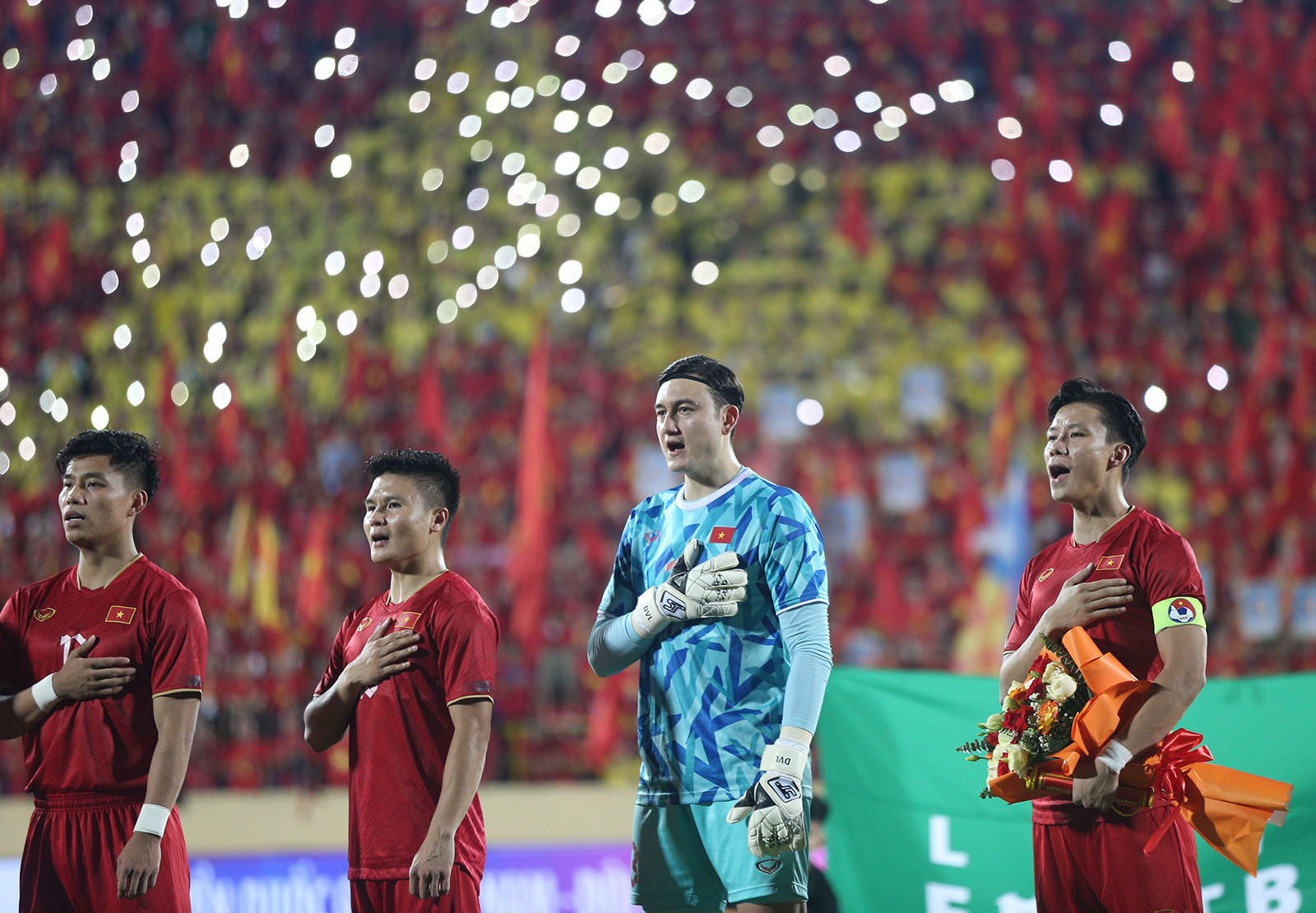 "Tôi muốn gửi lời cảm ơn tới người hâm mộ bóng đá Nam Định nói riêng và toàn thể người hâm mộ Việt Nam nói chung đã luôn dành tình cảm cho đội. Đó là nguồn động lực to lớn đối với tất cả anh em tuyển thủ, giúp mọi người có được sự tự tin, quyết tâm để đem lại những trận đấu đẹp nhất, cảm xúc nhất cho tất cả người hâm mộ Việt Nam", Quang Hải nói.