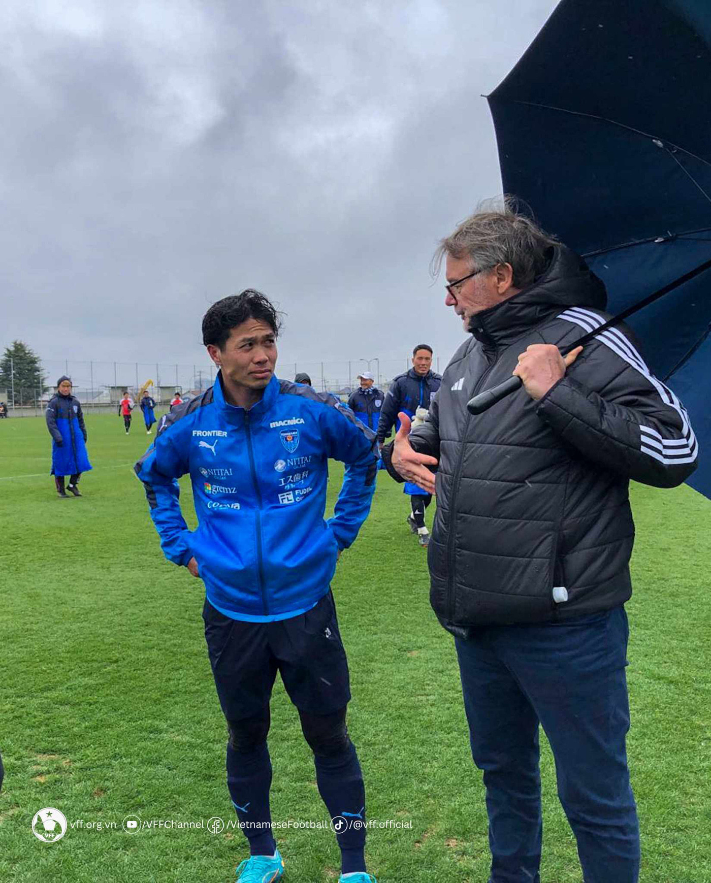 Nhà cầm quân Pháp gặp gỡ, cập nhật thông tin và động viên Công Phượng tiếp tục nỗ lực phấn đấu, trước hết là có cơ hội được ra sân nhiều hơn tại J-League 2, qua đó phát triển bản thân và đóng góp cho đội tuyển quốc gia.
