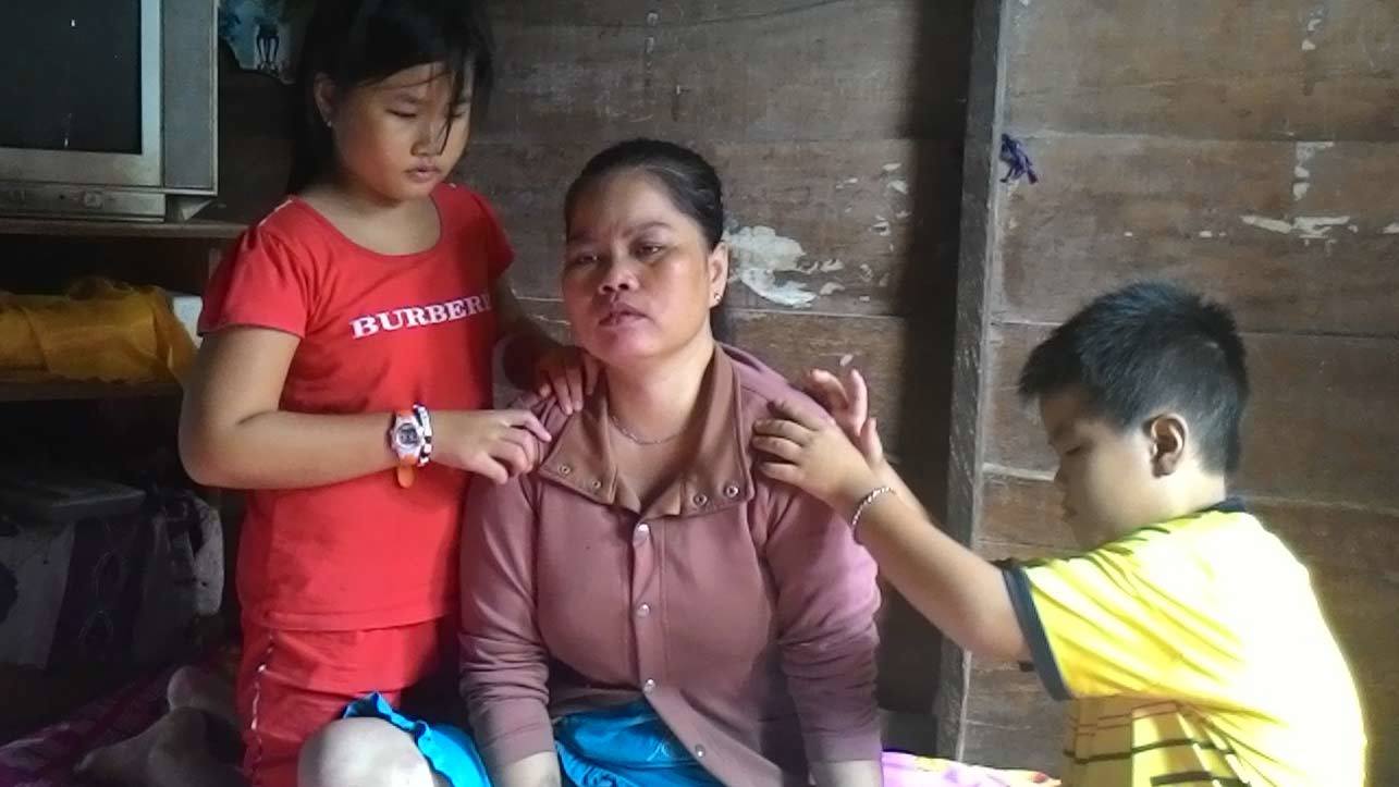 Giọng nói thều thào của người đàn bà bất hạnh: “Xin hãy cứu lấy chồng và con tôi”. Rồi chị lạc giọng đi trong tiếng nấc, đưa tay lau vội những giọt nước mắt khi kể về gia cảnh của mình.
