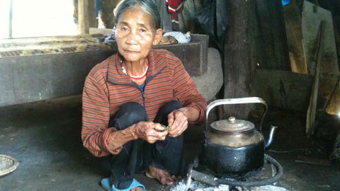 Chúng tôi không khỏi nghẹn lòng với hình ảnh người mẹ già còng lưng đeo gùi củi, nặng nhọc nhấc từng bước đi, kiếm tiền mưu sinh và nuôi đứa con mắc bệnh lạ.