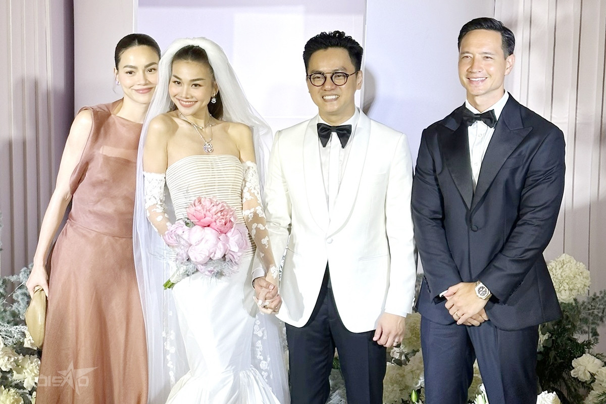 Vợ chồng Hồ Ngọc Hà - Kim Lý chúc mừng ngày trọng đại của Thanh Hằng cùng nhạc trưởng Trần Nhật Minh. Thanh Hằng và Hồ Ngọc Hà là đôi bạn thân nổi tiếng trong giới giải trí. Hai người đẹp thường rủ nhau đi mua sắm, du lịch. Cả hai được đánh giá ăn ý trong công việc lẫn cuộc sống.