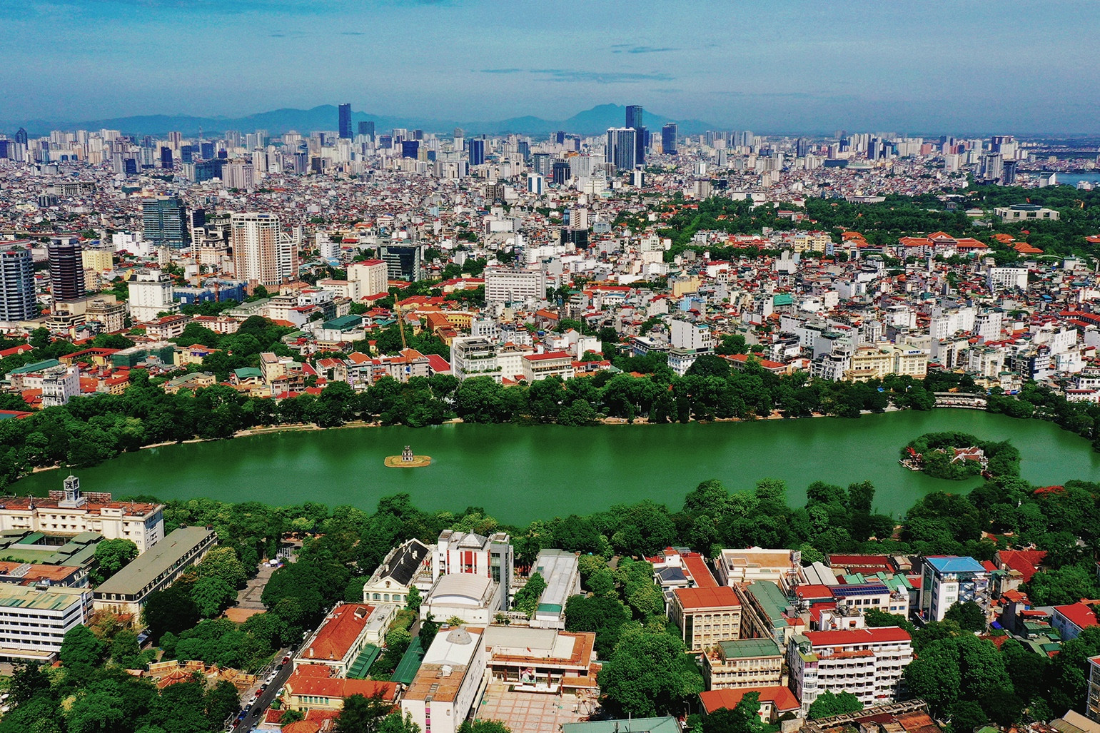 Trong một dịp được cấp phép bay flycam ở các khu vực "vùng đỏ" của Hà Nội đầu tháng 10, nhiếp ảnh gia Vũ Minh Quân đã ghi lại nhiều bức hình độc đáo về các di tích lịch sử, danh lam thắng cảnh xung quanh hồ Hoàn Kiếm và hồ Tây.
