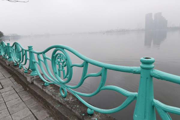 Phần lan can hơn 2km từ phố Nguyễn Đình Thi đến Trích Sài, dọc hồ Tây (Hà Nội) đang được thay mới hoàn toàn và lắp đặt thêm hệ thống đèn chiếu sáng trang trí.