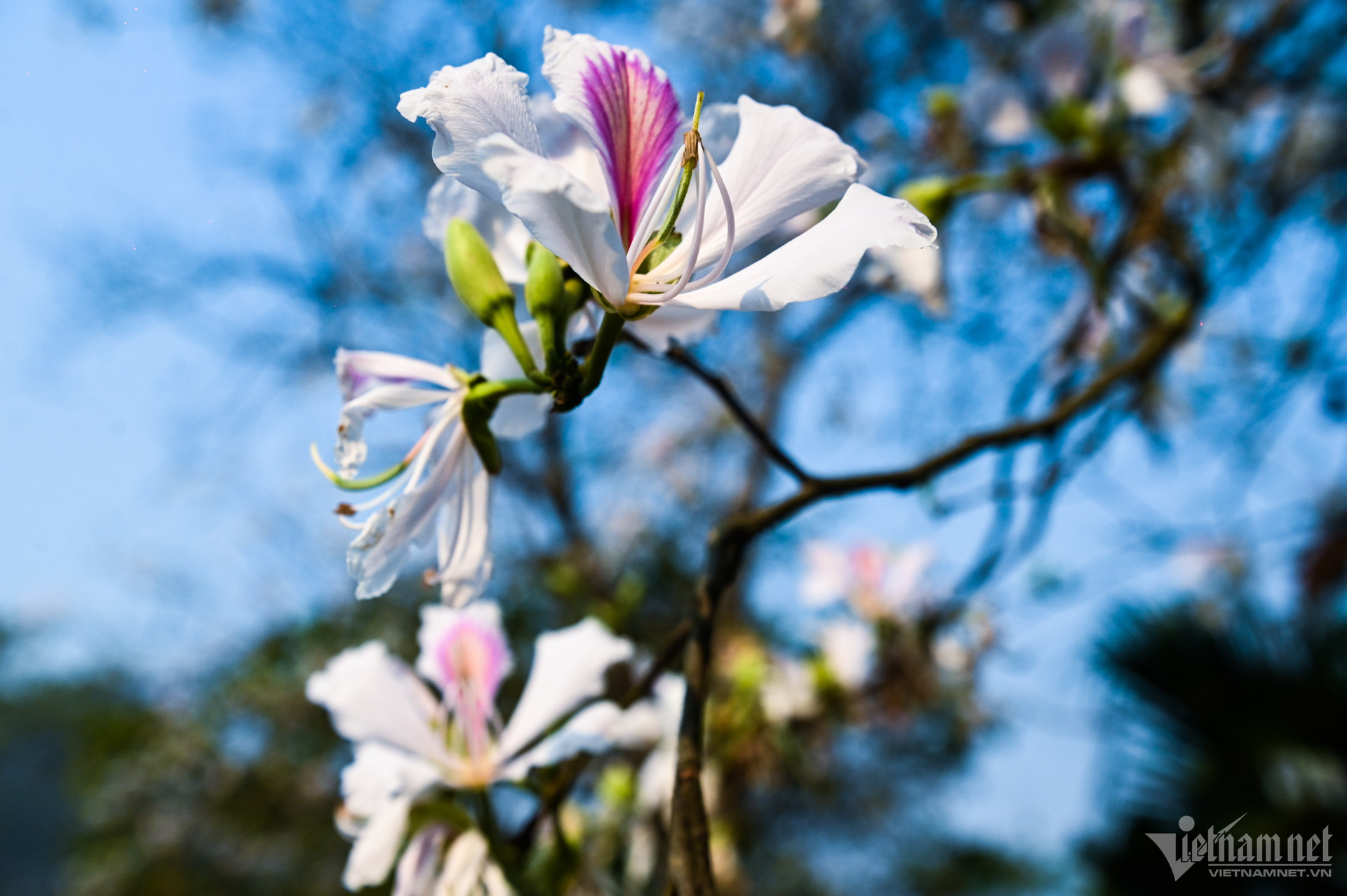 Những cây ban rừng nhiều năm tuổi nằm giữa núi đồi, đã trút hết lá, hoa nở bung, kết thành chùm đung đưa trong gió.
