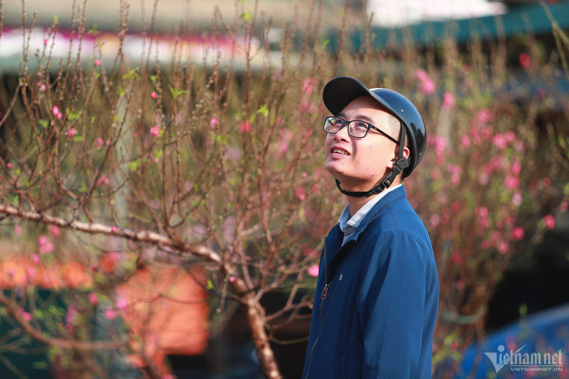 Anh Huy, (quận Nam Từ Liêm) đi mua đào về chơi Tết sớm. "Năm nay kinh tế khó khăn, do đó tôi chỉ mua cành đào loại có giá 1 triệu đồng trở xuống", anh nói.
