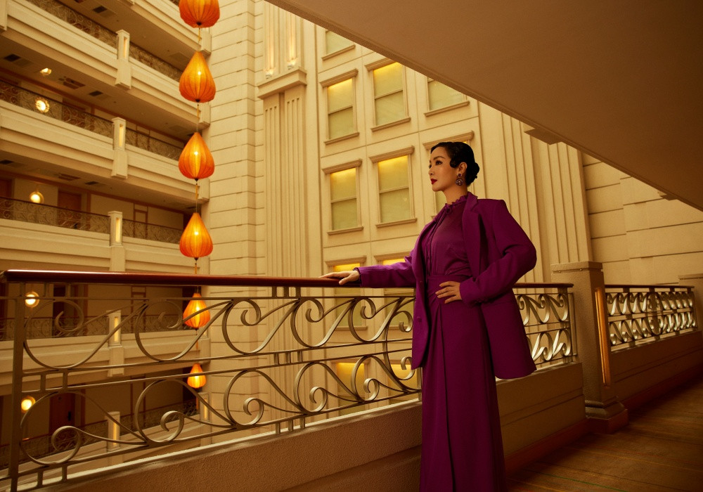 Giáng My tiếp tục là "nàng thơ" của Vũ Ngọc và Son, diện các thiết kế hoài cổ giữa không gian khách sạn 5 sao. Các bộ váy áo với sắc xanh, đỏ, vàng, tím… tạo nét rực rỡ nhưng vẫn mang cảm giác quý phái, sang trọng cho hoa hậu.
