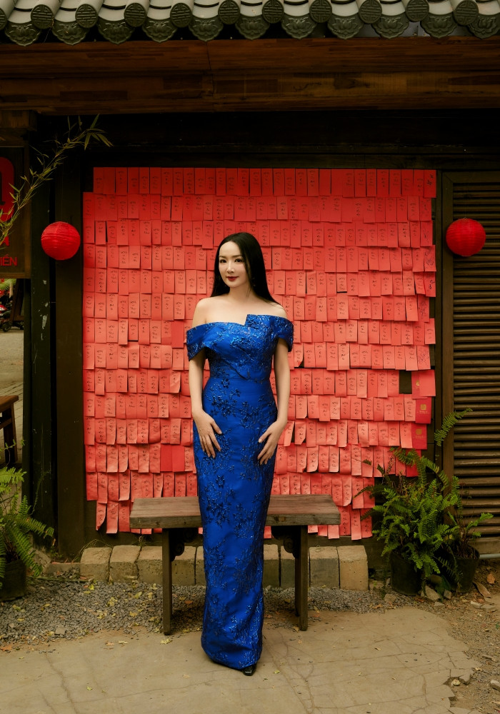 “Tôi lựa chọn thiết kế vừa hiện đại vẫn giữ vẻ đẹp truyền thống để lan tỏa thông điệp năm mới với sắc màu rực rỡ. Tôi mong muốn những ngày đầu năm sẽ nhiều hạnh phúc và may mắn đến tất cả mọi người”, Giáng My chia sẻ.