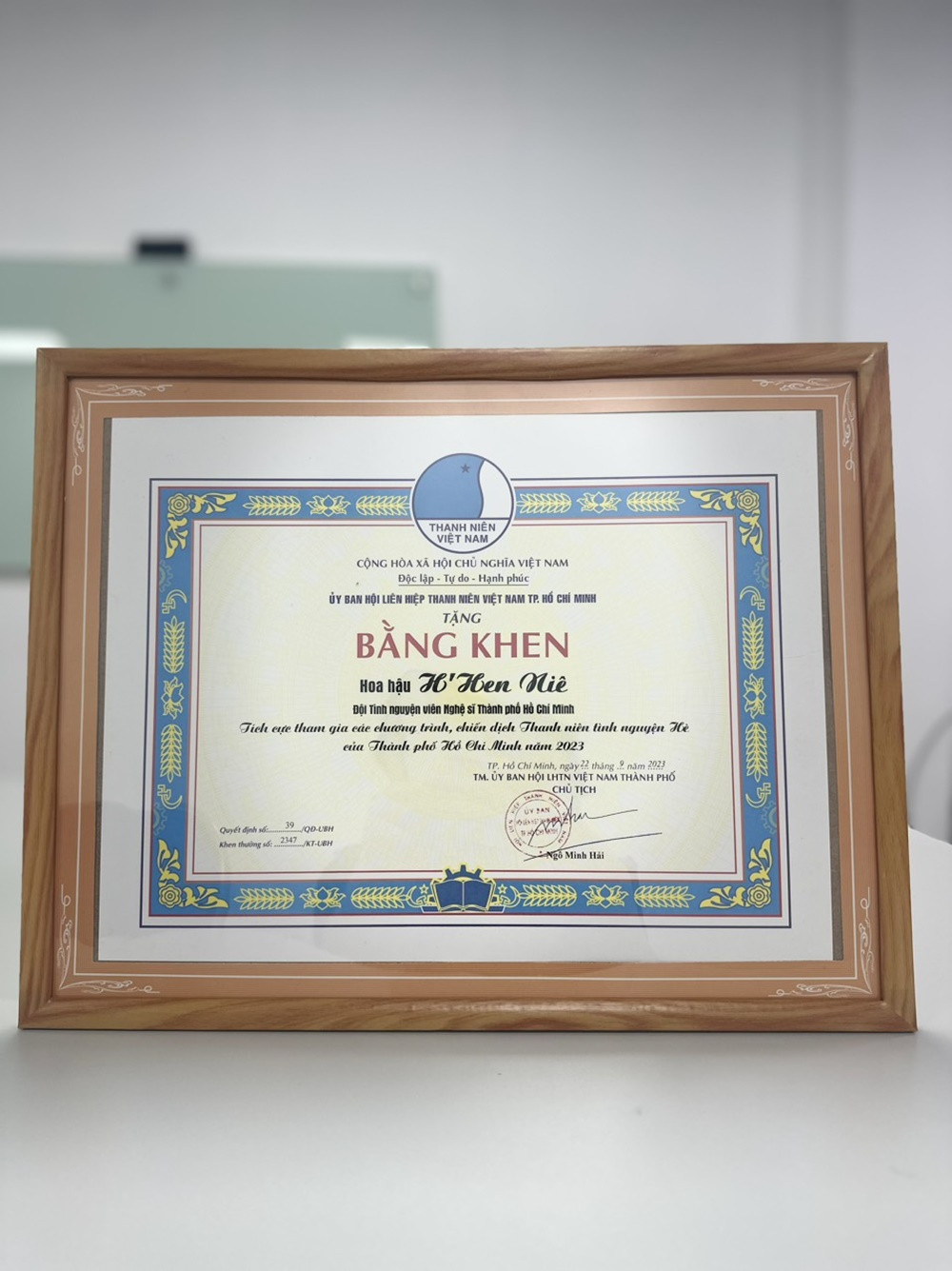 Gần đây, cùng với hơn 150 văn nghệ sĩ khác, Hoa hậu H'Hen Niê đã nhận được bằng khen "Nghệ sĩ vì cộng đồng năm 2023" vì những đóng góp tích cực trong các hoạt động tình nguyện. Đặc biệt, cô được tặng bằng khen nghệ sĩ tích cực tham gia vào các chiến dịch tình nguyện của Thanh niên TP.HCM năm 2023. Đây là sự công nhận về những nỗ lực và cống hiến của H'Hen Niê và là động lực để cô tiếp tục đóng góp nhiều hơn cho các hoạt động cộng đồng đã gắn bó nhiều năm qua.
