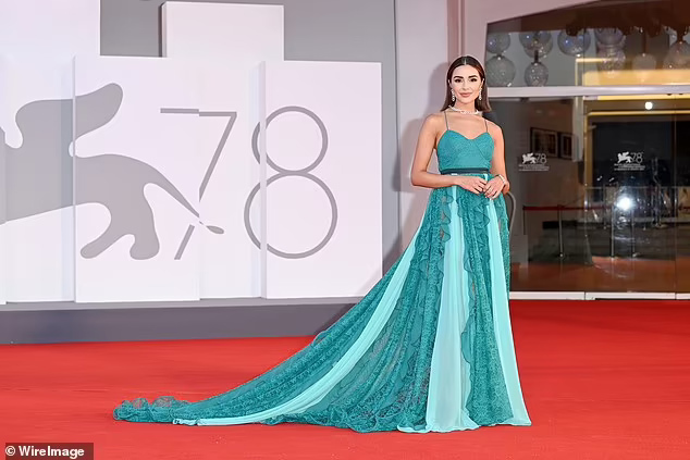 Olivia Culpo xuất hiện trên thảm đỏ LHP Venice những ngày cuối và chọn chiếc đầm xanh hai dây hở lưng nổi bật trên thảm đỏ dự buổi công chiếu phim America Latina tối 9/9.