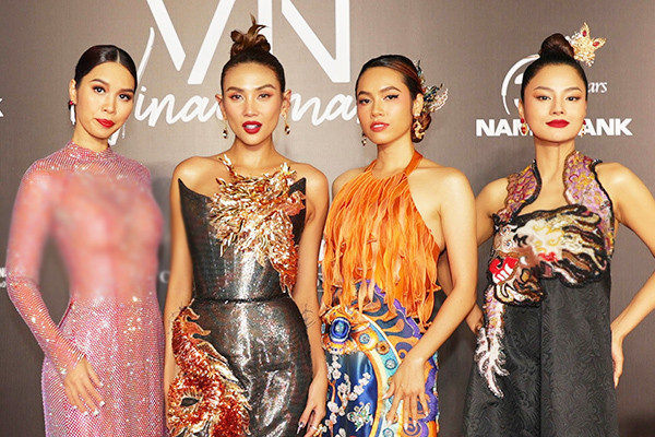 Top 5 Hoa hậu Hoàn vũ 2022 Lê Hoàng Phương và Á hậu 2 Thủy Tiên lần lượt giữ vị trí mở màn và vedette cho show diễn của nhà thiết kế Nguyễn Minh Tuấn.