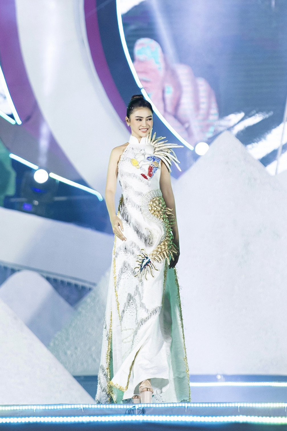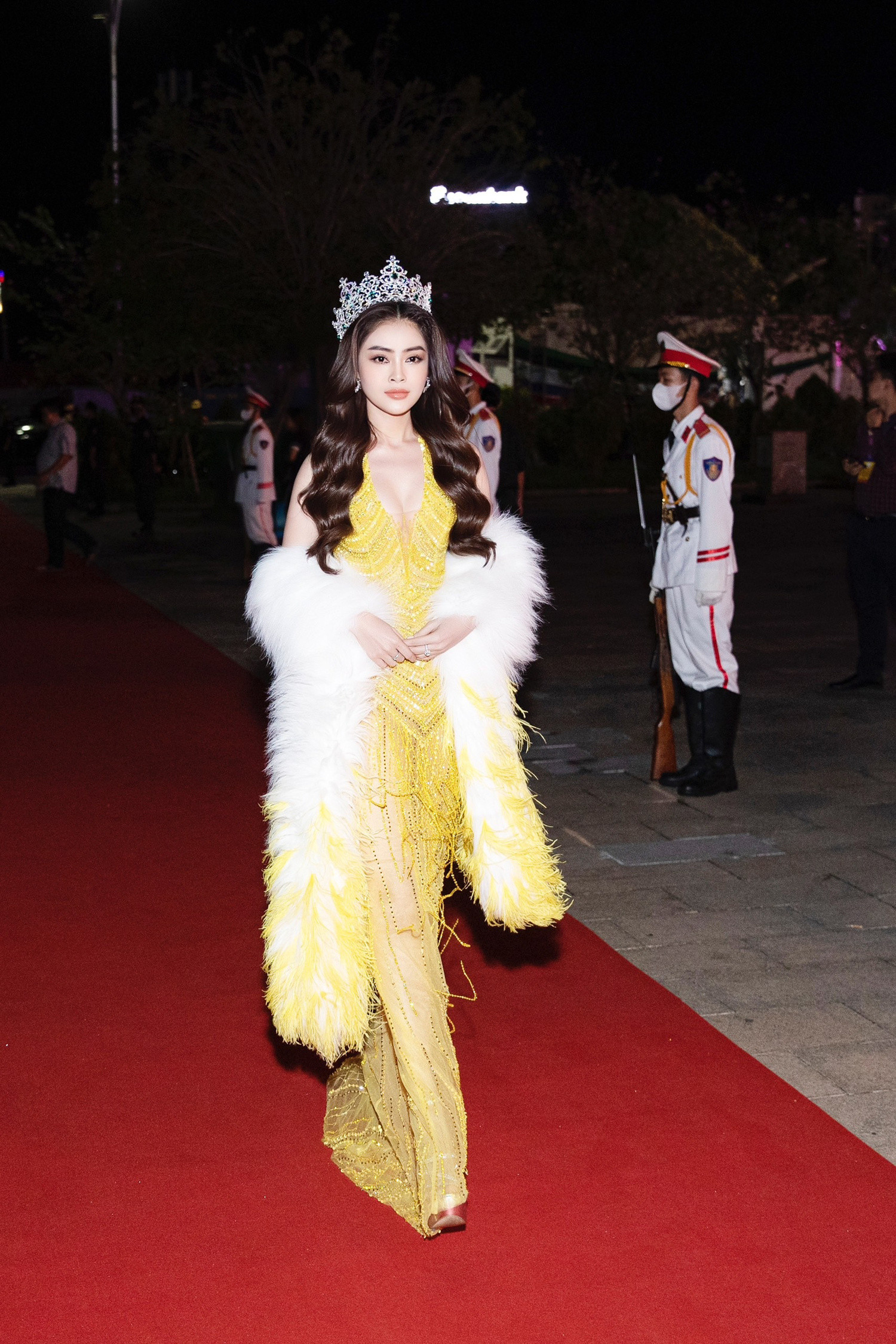Tại sự kiện khai mạc Ngày hội văn hóa du lịch Bạc Liêu và lễ hội Dạ cổ hoài lang 2022, Lý Kim Thảo diện chiếc đầm vàng đính đá cắt xẻ phần ngực và eo, khoe đường cong gợi cảm của người mặc. Người đẹp làm tóc xoăn lọn to, trang điểm sắc sảo, tạo điểm nhấn tổng thể bằng chiếc vương miện trị giá 3 tỷ đồng.Ngày hội văn hóa du lịch Bạc Liêu và lễ hội Dạ cổ hoài lang 2022 diễn ra trong 3 ngày với 14 hoạt động đa dạng, phong phú. Sự kiện quy tụ hơn 500 nghệ sĩ, nghệ nhân, diễn viên của 25 tỉnh, thành phố cả nước, là một trong những hoạt động nằm trong chuỗi sự kiện của Năm Du lịch quốc gia 2022. Lý Kim Thảo dự lễ khai mạc với vai trò đại biểu, Đại sứ du lịch tỉnh Bạc Liêu."Bạc Liêu là cái nôi của nghệ thuật đờn ca tài tử Nam Bộ, quê hương của bản "Dạ cổ hoài lang" bất hủ đặt nền móng cho sự phát triển của loại hình âm nhạc vọng cổ và nghệ thuật sân khấu cải lương. Ngày hội là dịp để quê hương Bạc Liêu của tôi giới thiệu, quảng bá những nét đặc sắc về văn hóa, du lịch và tiềm năng, thế mạnh của tỉnh đến với bạn bè trong nước và quốc tế, thu hút đầu tư, du khách, đẩy mạnh phát triển du lịch và góp phần thúc đẩy kinh tế xã hội của tỉnh phát triển", cô nói.Biểu diễn tiết mục "Đất trời Bạc Liêu" cùng ca sĩ Quốc Đại, Lý Kim Thảo thay bộ áo dài khoét vai, cổ yếm nằm trong bộ sưu tập "Cá chép hóa rồng" của NTK Phương Hồ. Thiết kế sử dụng kỹ thuật tạo hình rồng trên nhiều sợi hạt pha lê và ngọc trai, mô phỏng vẩy và râu rồng khéo léo. Phần tà bay bổng tăng độ mềm mại cho trang phục. Cô búi tóc cao, tạo nét thanh lịch cho tổng thể.Ở phần giao lưu, nhận hoa từ các cấp lãnh đạo địa phương, Lý Kim Thảo mặc đầm cổ yếm trắng dáng dài của NTK Lương Xuân Bình. Thiết kế tôn vai thon của người đẹp sinh năm 1996.Lý Kim Thảo sinh năm 1996, quê Bạc Liêu, cao 1,72 m, số đo ba vòng 86-59-93 cm. Cô từng giành danh hiệu á hậu tại Hoa hậu Việt Nam châu Á 2018 trước khi trở thành Hoa hậu Du lịch Việt Nam toàn cầu 2022. Cô hoạt động chủ yếu với vai trò người mẫu, diễn viên.
