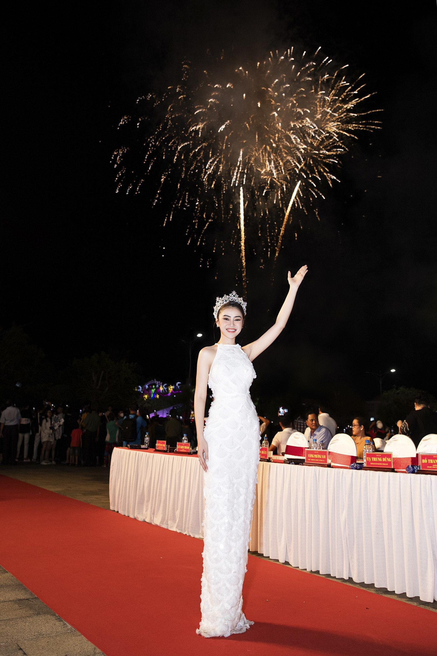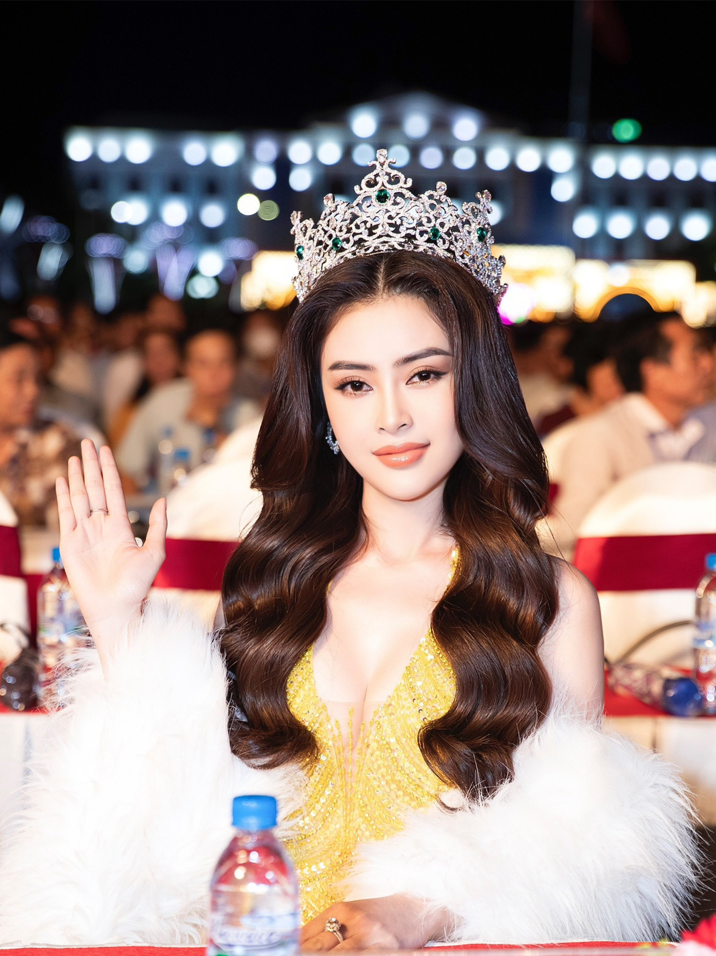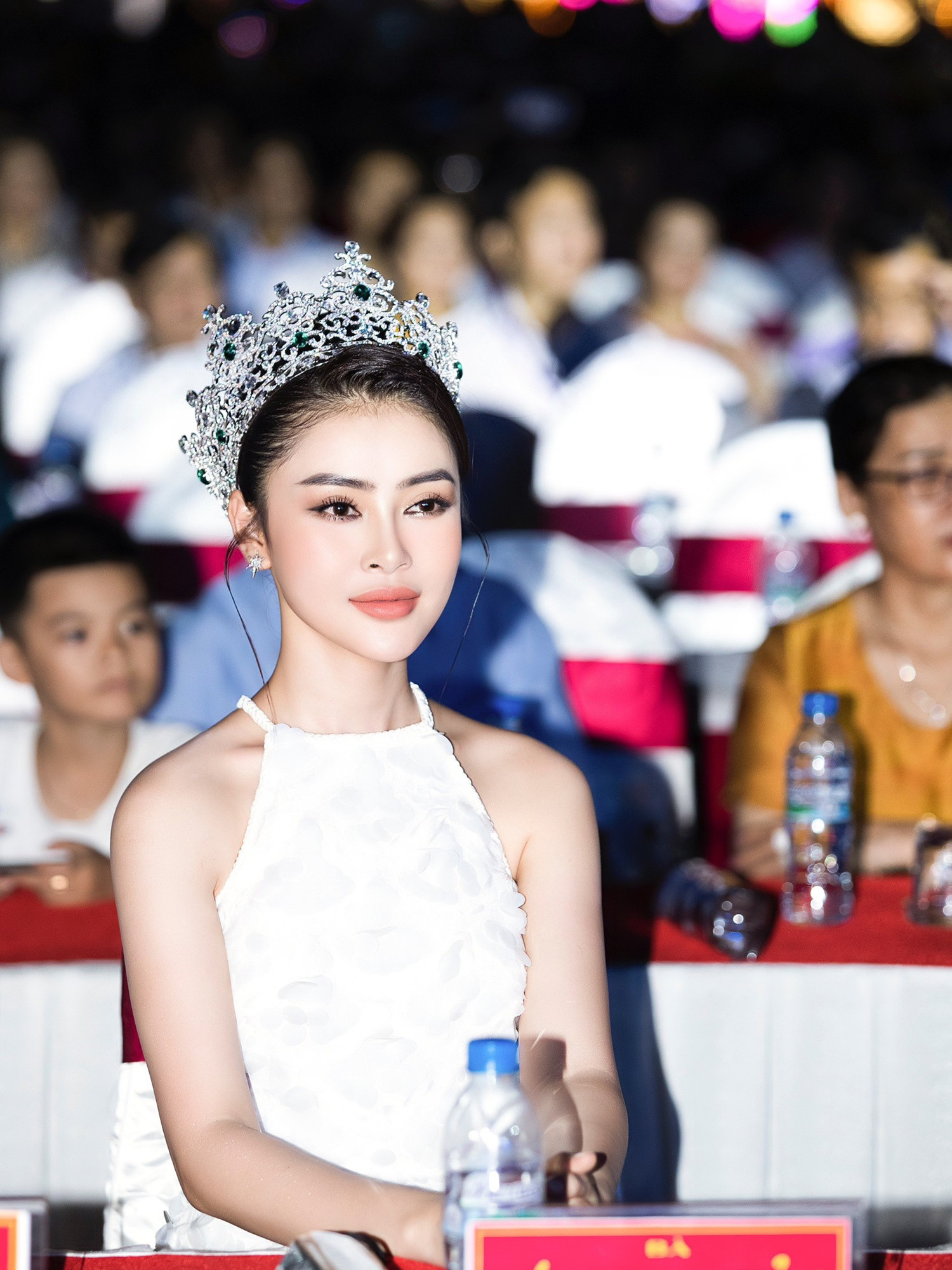 Dự sự kiện ở quê Bạc Liêu, hoa hậu Lý Kim Thảo mặc váy xẻ ngực gợi cảm, nổi bật với chiếc vương miện trị giá 3 tỷ đồng.