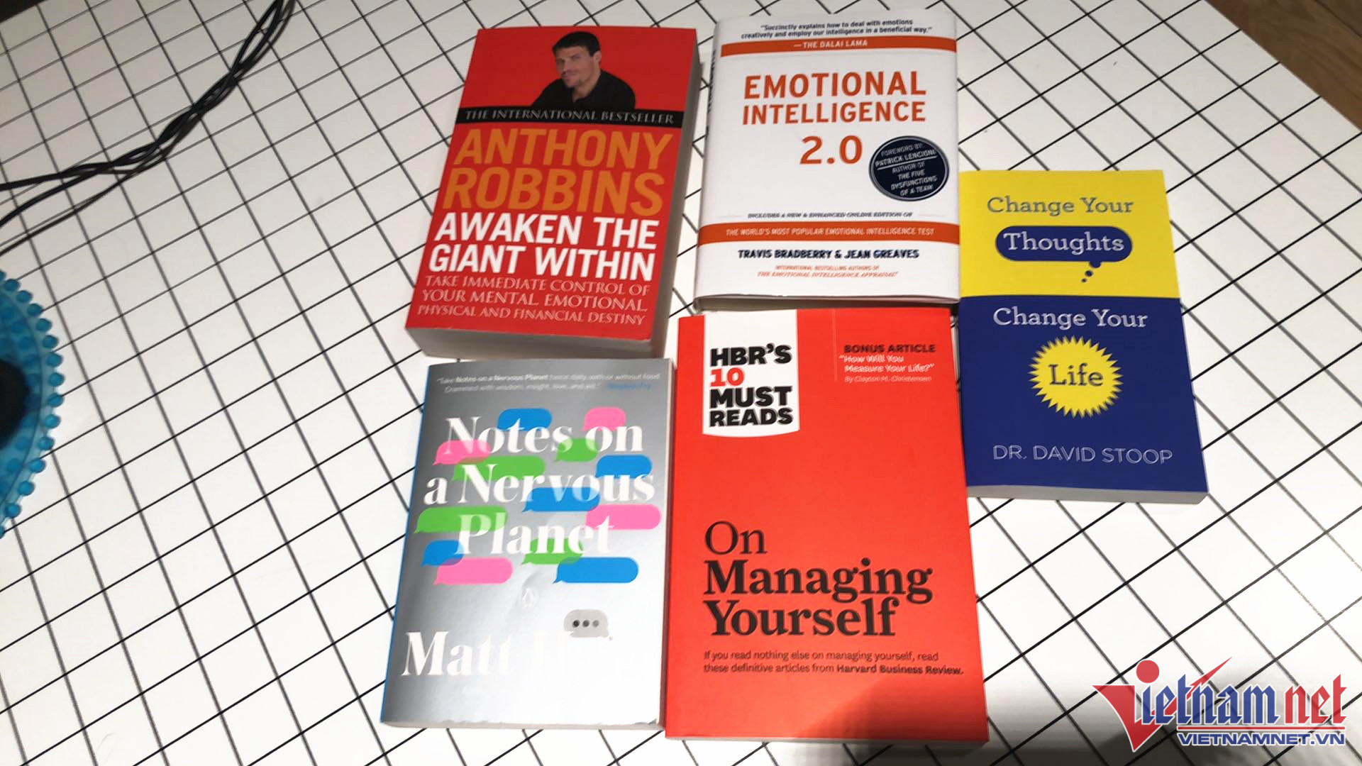 Đó là lý do tủ sách của người đẹp 7X luôn có những quyển hướng dẫn con người tự học, tự phát triển bản thân như: On managing yourself (Clayton M. Christensen), Notes on a Nervous Planet (Matt Haig)...