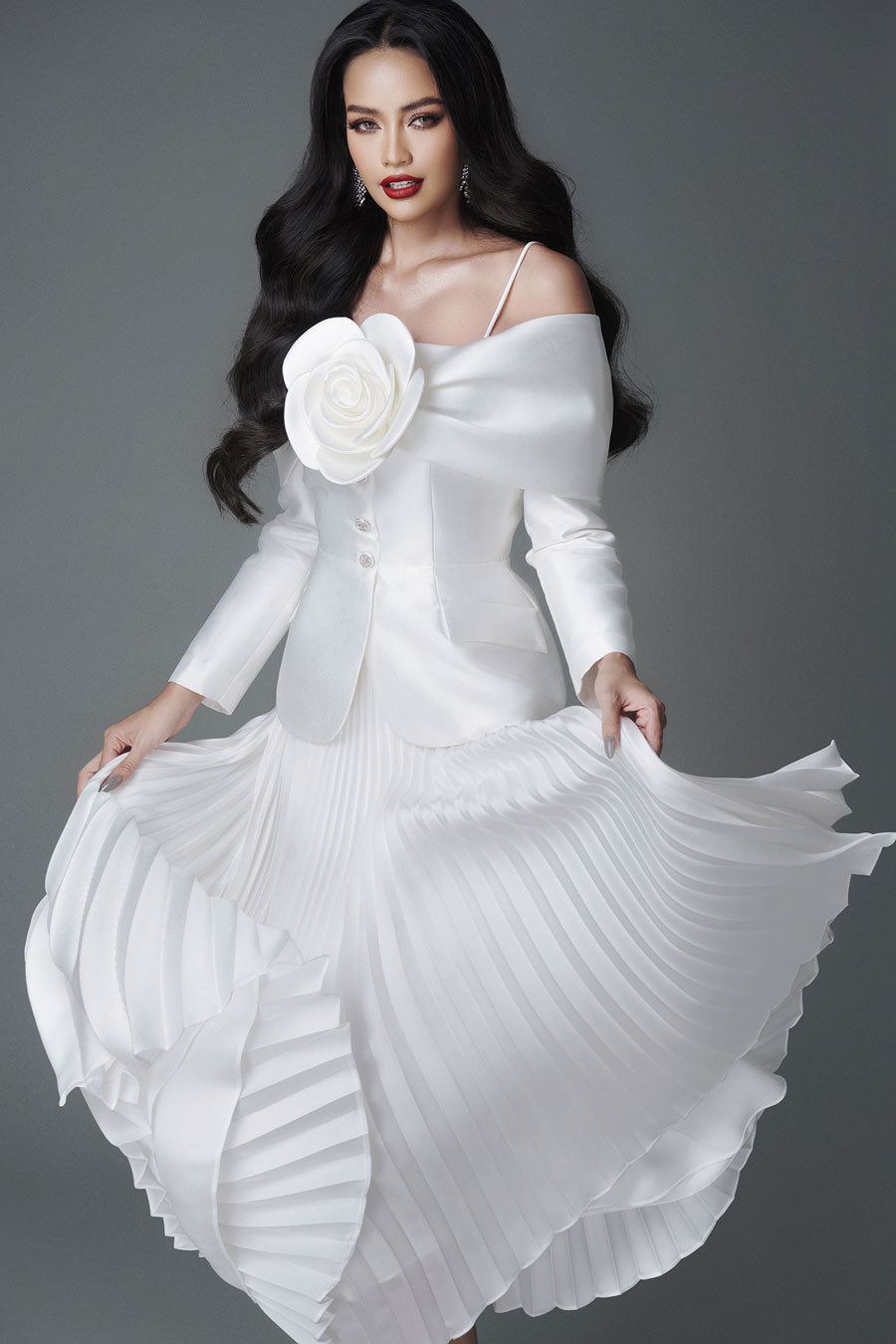 Hoa hậu Ngọc Châu khoe chân dài, vai gầy, eo thon trong loạt thiết kế tôn dáng của Đỗ Mạnh Cường.