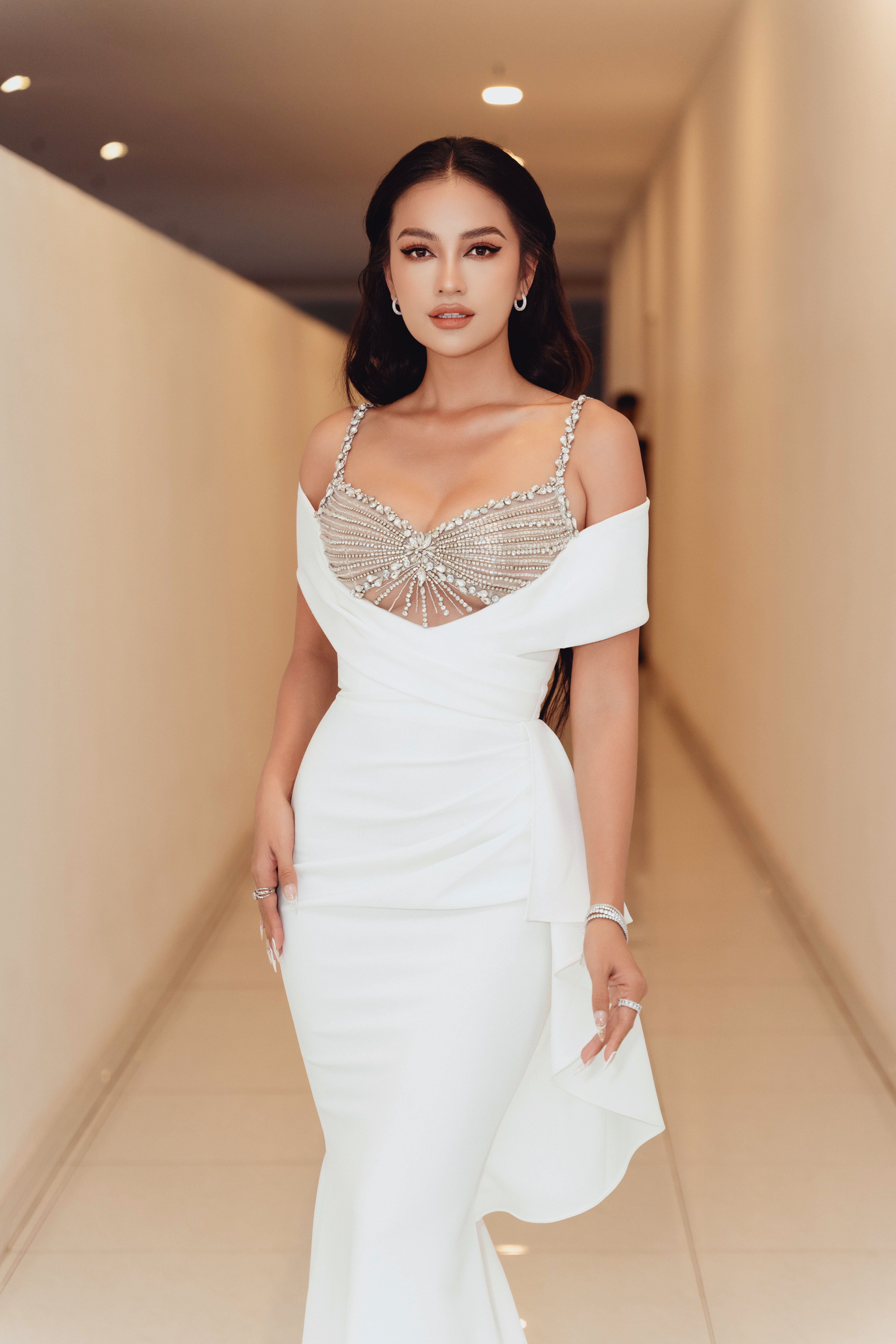 Hoa hậu Hoàn vũ Việt Nam 2022 ưa chuộng những thiết kế ôm sát cơ thể được nhà thiết kế Lê Ngọc Lâm sáng tạo riêng.