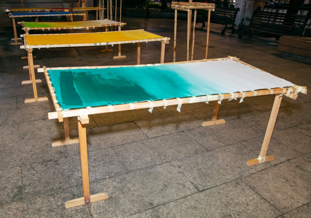 “Chính chất liệu mình sử dụng như nào để người khác nhìn vào sẽ thấy đặc trưng của nhà thiết kế. Tôi muốn mọi người thấy màu sắc của Trung Đinh, đó là lụa nhuộm và vẽ, kết hợp lại với nhau tạo nên tác phẩm ấn tượng”, anh nói.
