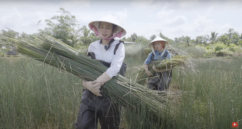 Hai cô gái vốn chỉ xuất hiện trước ống kính đã lột xác trở thành nông dân. Dù gặp khó khăn trong bước đầu, Thùy Tiên và MisThy với sự giúp sức của người dân địa phương đã thu hoạch được những bó cỏ bàng, sơ chế và đan bàng.