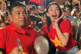 Trong lúc chờ bánh chín, cả nhóm đã cùng người dân theo dõi trận chung kết ASEAN Cup 2024 giữa Việt Nam và Thái Lan. Hình ảnh Thùy Tiên hòa mình cùng mọi người cổ vũ cho đội tuyển nhanh chóng lan tỏa trên mạng xã hội.
