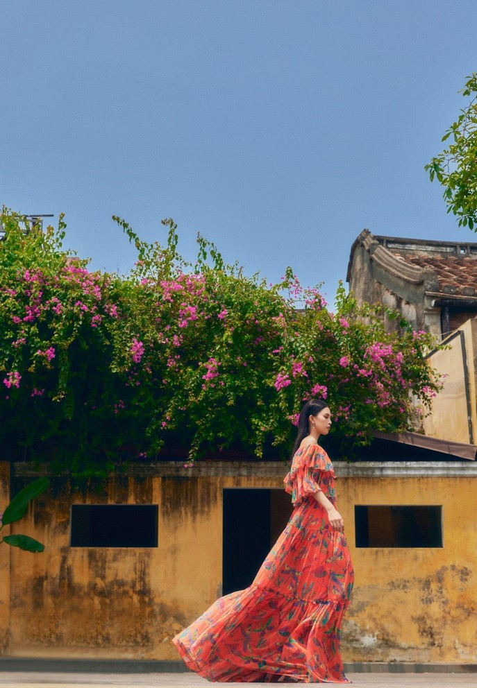 Cả tuổi thơ gắn bó với phố cổ cũng giúp Tiểu Vy có một góc nhìn rất khác về vùng đất này. Cô thể hiện vẻ đẹp của xứ thương cảng sầm uất một thời qua lăng kính thời trang khác lạ, lúc bồng bềnh như tơ lụa, khi thì uyển chuyển duyên dáng.