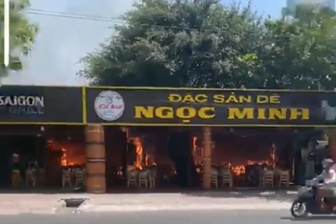 Khói lửa bùng lên dữ dội tại quán lẩu dê ở TP Mỹ Tho, Tiền Giang làm thiệt hại nhiều tài sản.