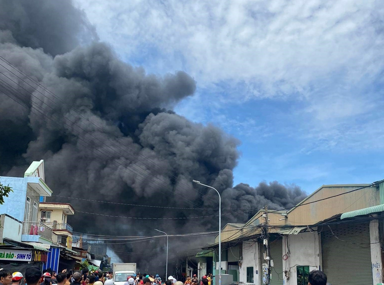 Khói đen cuồn cuộn bao trùm nhà xưởng trong khu đông dân ở Bình Dương