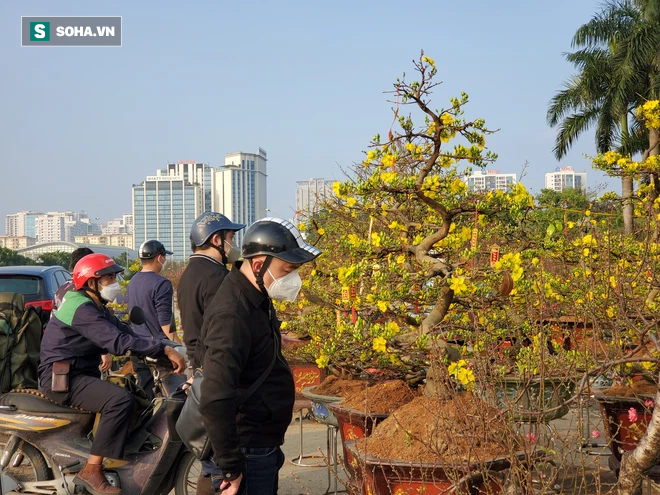 "Năm nay chúng tôi cũng giảm bớt 1 chút số lượng chậu mai mang ra Hà Nội. Tổng số có 400 chậu, chia làm hai điểm bán khác nhau. Hi vọng sau 23 tháng Chạp sức mua sẽ tốt hơn", chủ vườn mai nói.