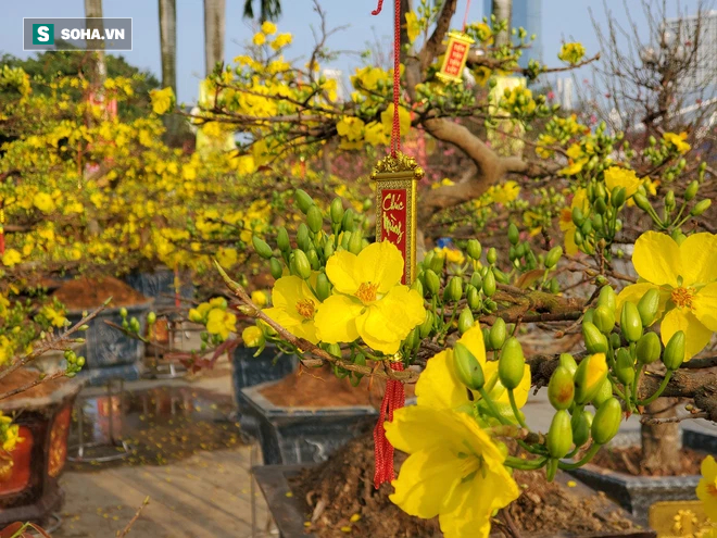 Mai vàng vượt hàng ngàn cây số ra Hà Nội mất khoảng 2 ngày. Cây đã được chăm sóc quanh năm tươi tốt, trong những ngày bày bán tại chợ, chủ vườn chỉ cần tưới nước đảm bảo độ ẩm cho cây là hoa sẽ nở đều.