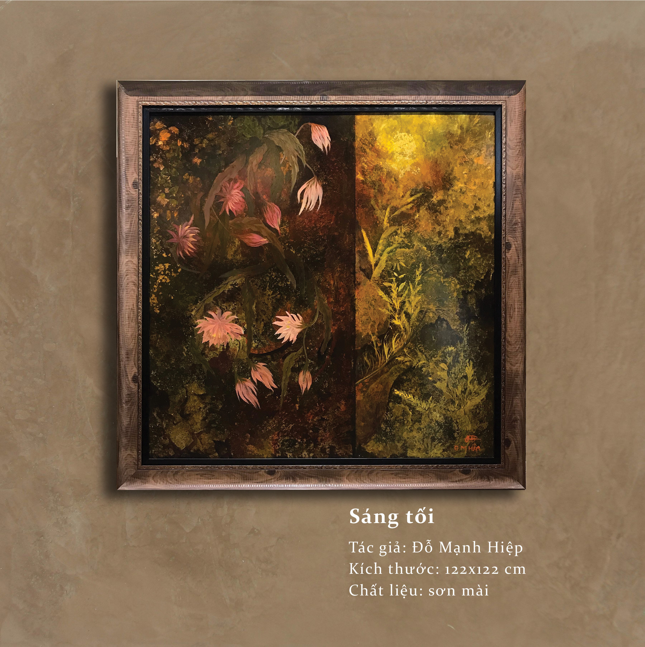 Lúc đầu, tôi vẽ trên nhiều chất liệu nhưng cuối cùng chọn sơn mài. Để vẽ sơn mài cần có độ tĩnh nhất định. Tranh sơn mài tạo ra hiệu ứng và cảm xúc bề mặt mà các chất liệu khác không có được.