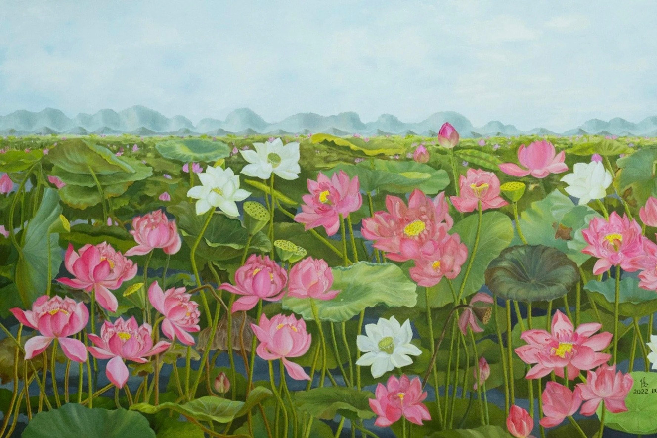 “Một thầy từng nói với tôi: Vẽ được sen, vẽ được Phật bà Quan Âm là công đức vô lượng. Từ đó, tôi kiên trì vẽ sen. Có những lúc tưởng không cầm bút được nữa nhưng khi ngồi xuống, nét vẽ lại tuôn chảy như chưa từng rời xa”, hoạ sĩ kể.