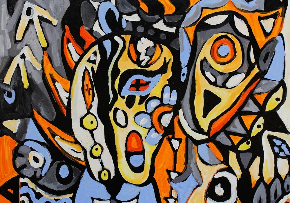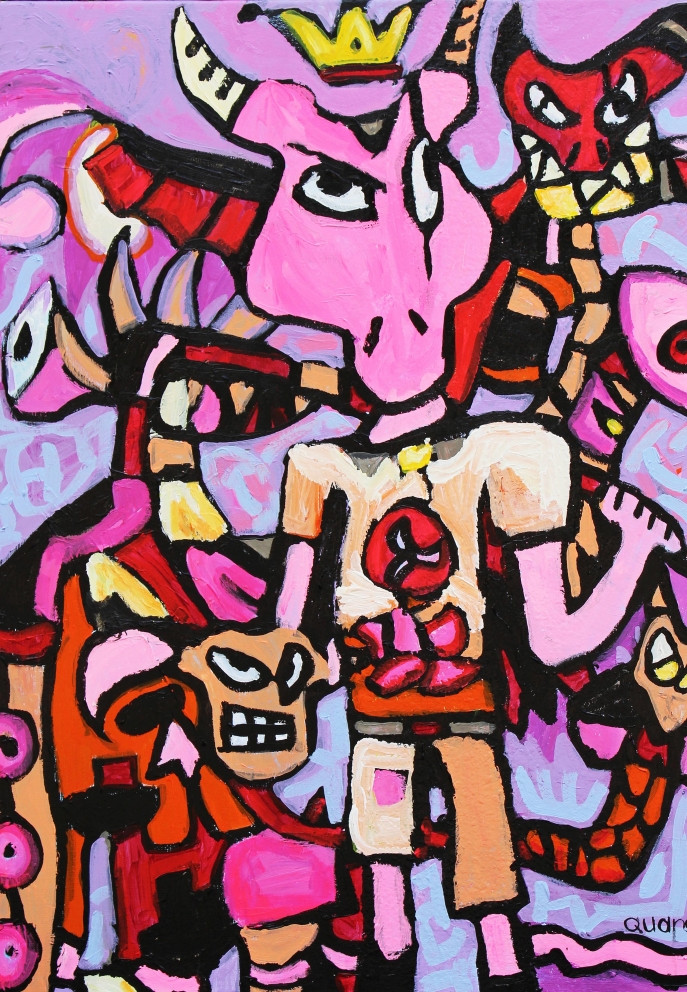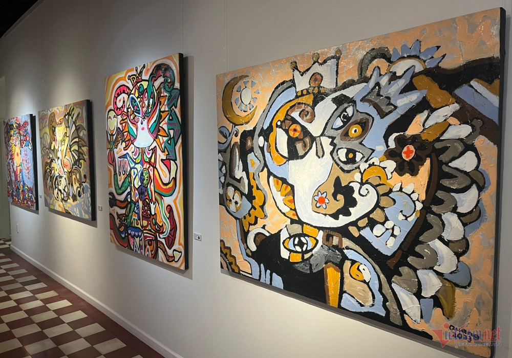 7 năm gắn bó với hội họa, Nhật Quang yêu thích lối vẽ trừu tượng. Dù với chủ đề nào, cậu cũng thể hiện dưới góc nhìn nhân hóa của mình, tạo ra những tác phẩm độc đáo như bông hoa cũng có tay chân, môi mắt, mặt người gắn với cơ thể của robot… Với mỗi bức, Quang mất thời gian từ 1-3 tuần do chỉ vẽ sau khi hoàn thành học văn hóa trên lớp.