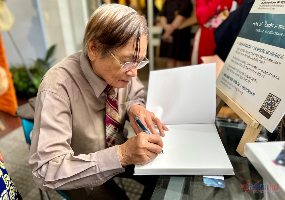 Triển lãm Khi người chiến sĩ là họa sĩ khai mạc sáng 14/7 tại TP.HCM, đánh dấu cột mốc 70 năm cầm cọ và 60 năm gắn bó với mảng đề tài tranh kháng chiến của họa sĩ Trang Phượng.