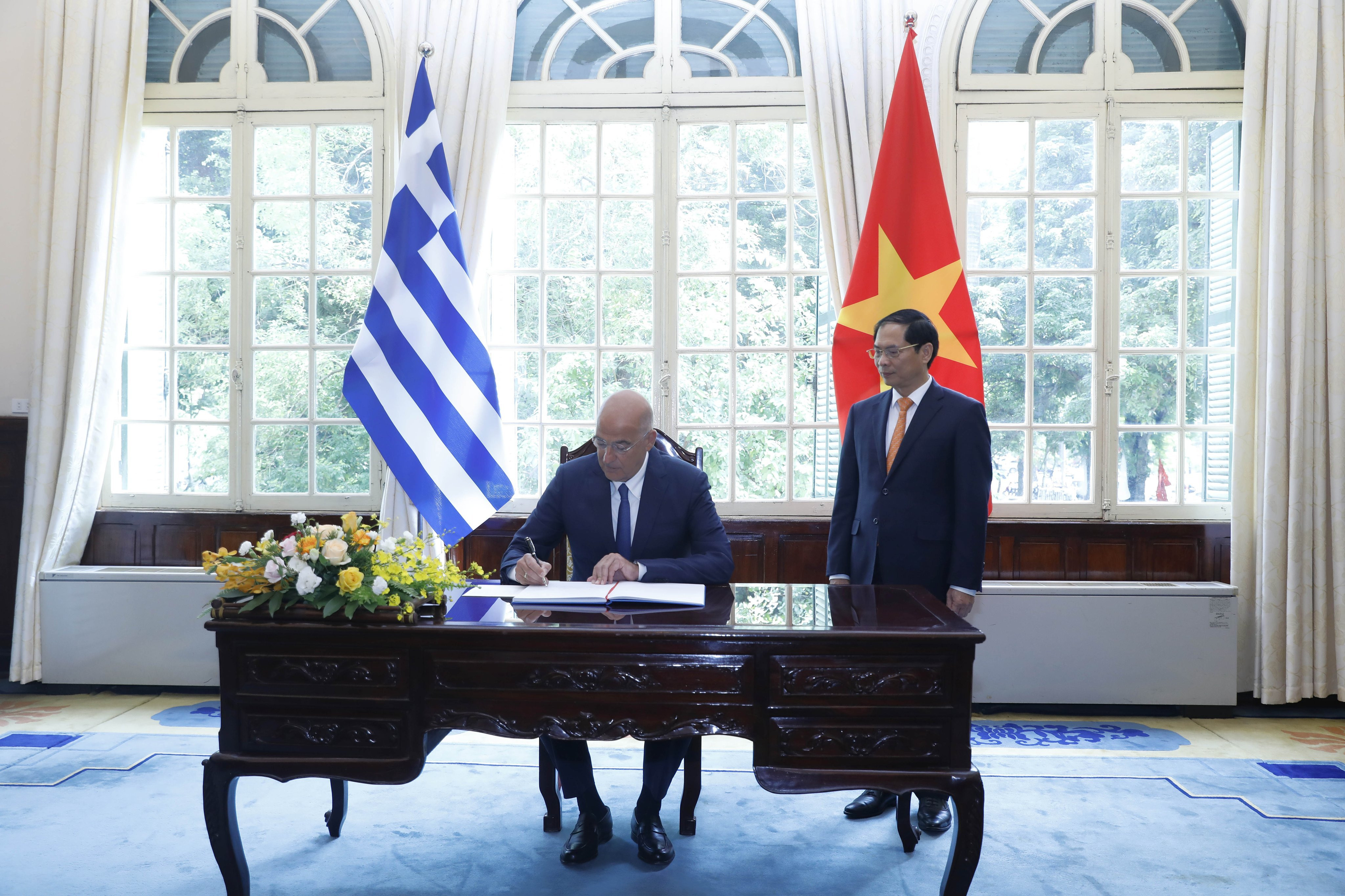 Trước đó, vào sáng nay, tại Nhà khách Chính phủ, Bộ trưởng Ngoại giao Bùi Thanh Sơn đã hội đàm với Bộ trưởng Ngoại giao Nikolaos Dendias.