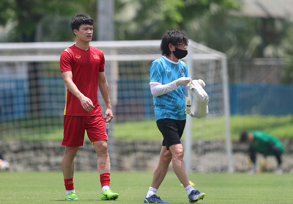 Tiền vệ U23 Việt Nam cũng không tham gia vào bài tập chiến thuật cùng đội sau đó. Thậm chí chuyên gia Choi còn băng bó phần bắp chân trái cho cầu thủ thuộc biên chế CLB Viettel.