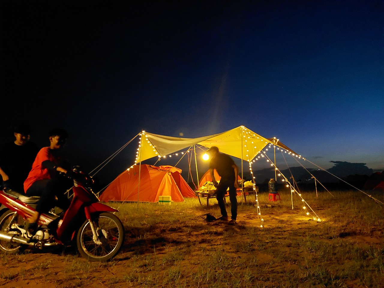 Về đêm, khung cảnh lại cảng trở nên lãng mạn, đây là thời điểm mọi người cùng nhau căng bạt, dựng lều để làm trại nghỉ lại qua đêm, quây quần bên nhau tổ chức tiệc nướng ngay bên bờ hồ, trò chuyện với nhau sau những ngày làm việc căng thẳng.